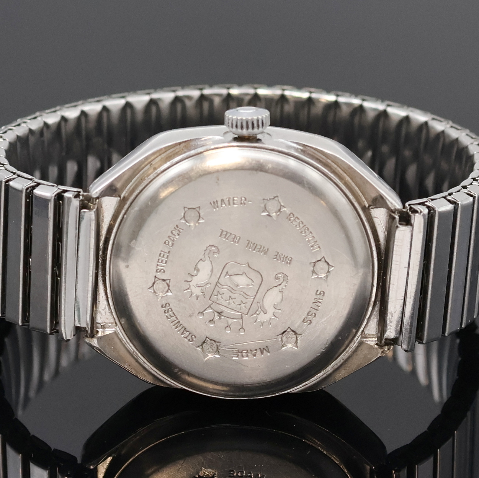 Geh., Stahlboden verschr., neutr. Flexband, blaues Zifferbl., Zentralsek., Minute,