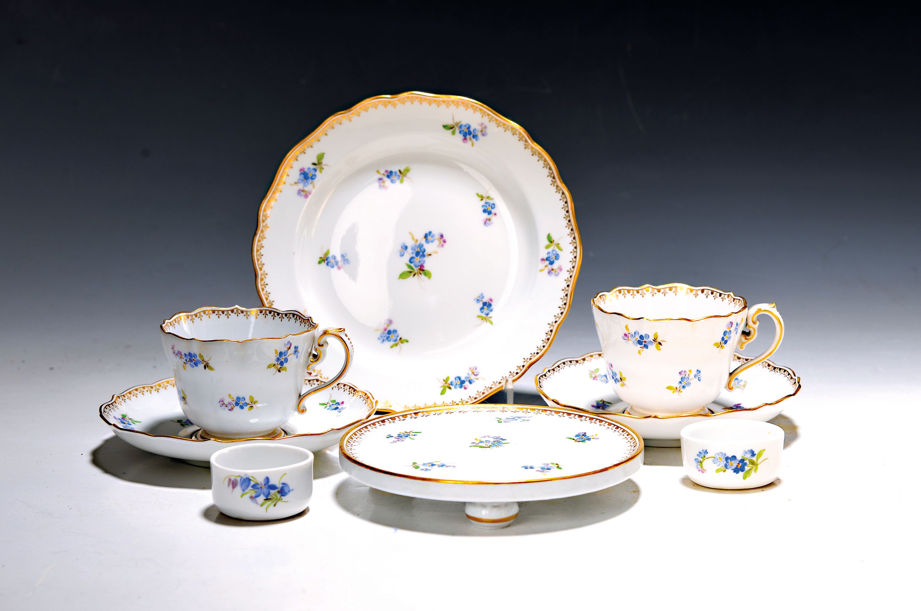 6 Tassen mit Untertassen, 6 Gebäckteller, Meissen, um 1900, 1. Wahl, Porzellan,