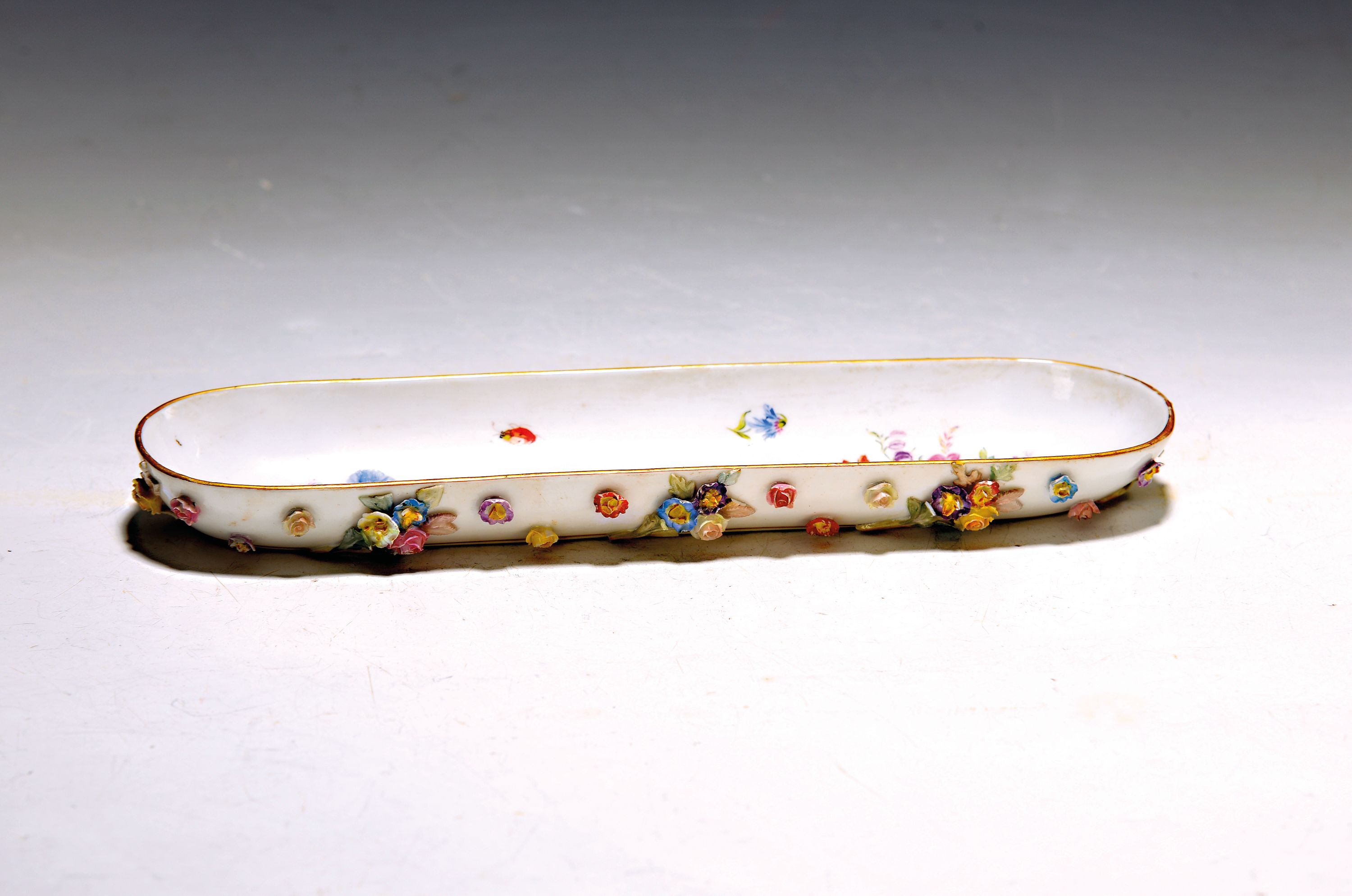 Federschale, Meissen, um 1900, 1. Wahl, bunt bemalt mit kl. Blumenbuketts und Streublumen,