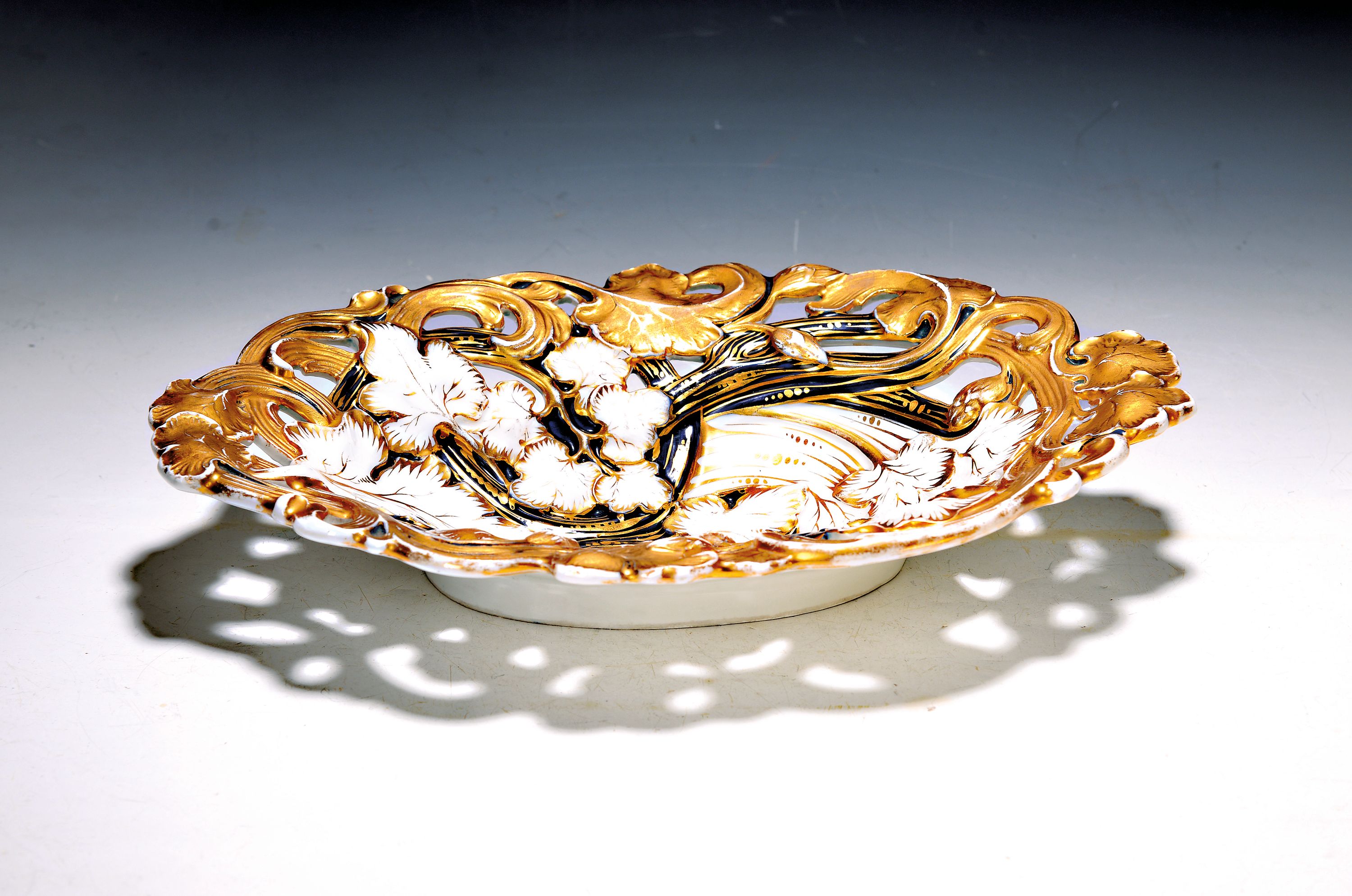 Prunkschale, Meissen, um 1870-80, 1. Wahl, Porzellan, reich reliefiert, partiell
