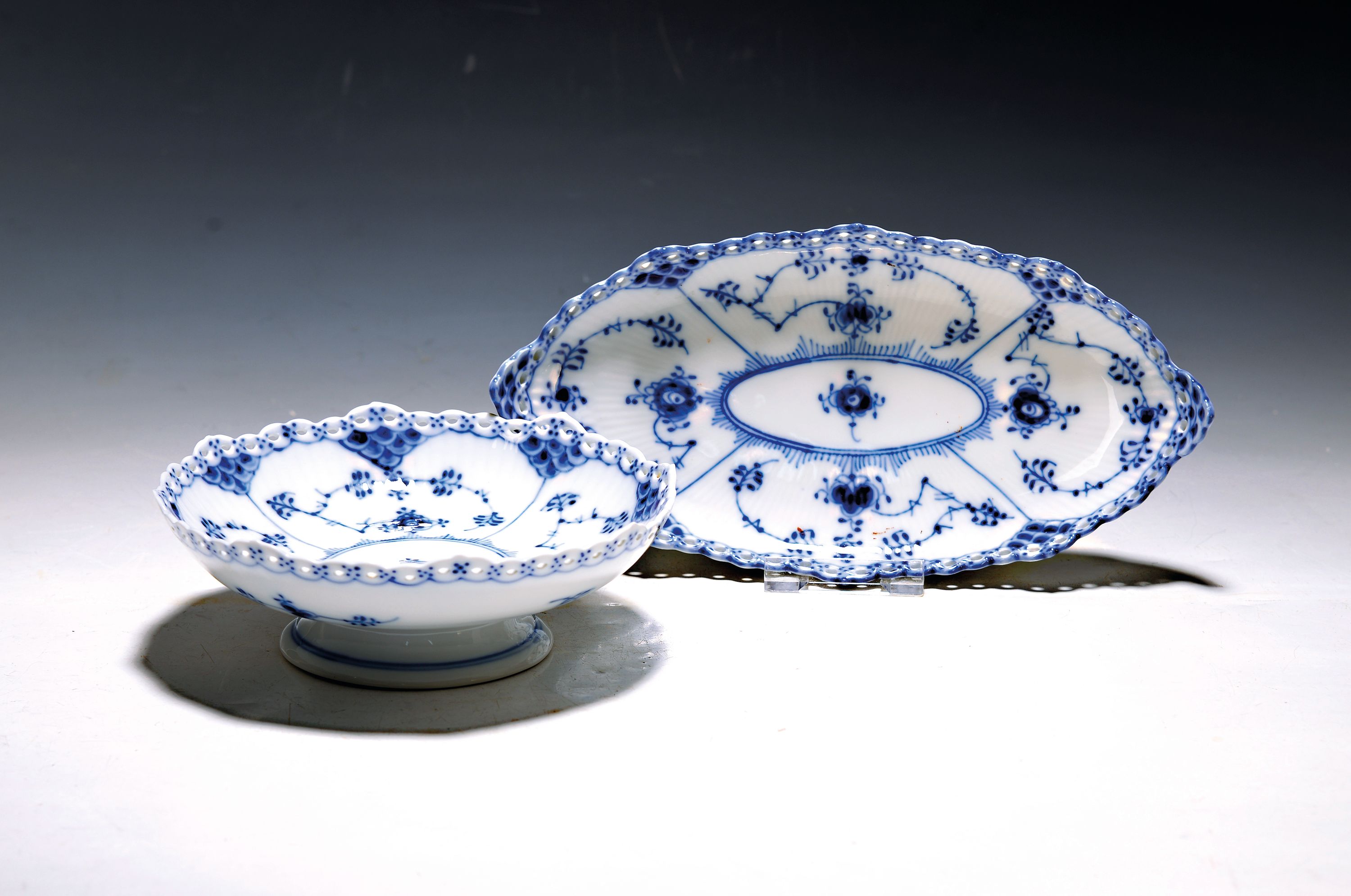 2 Schalen, Kgl. Kopenhagen, Dekor Musselmalet Vollspitze, Porzellan, blauer floraler