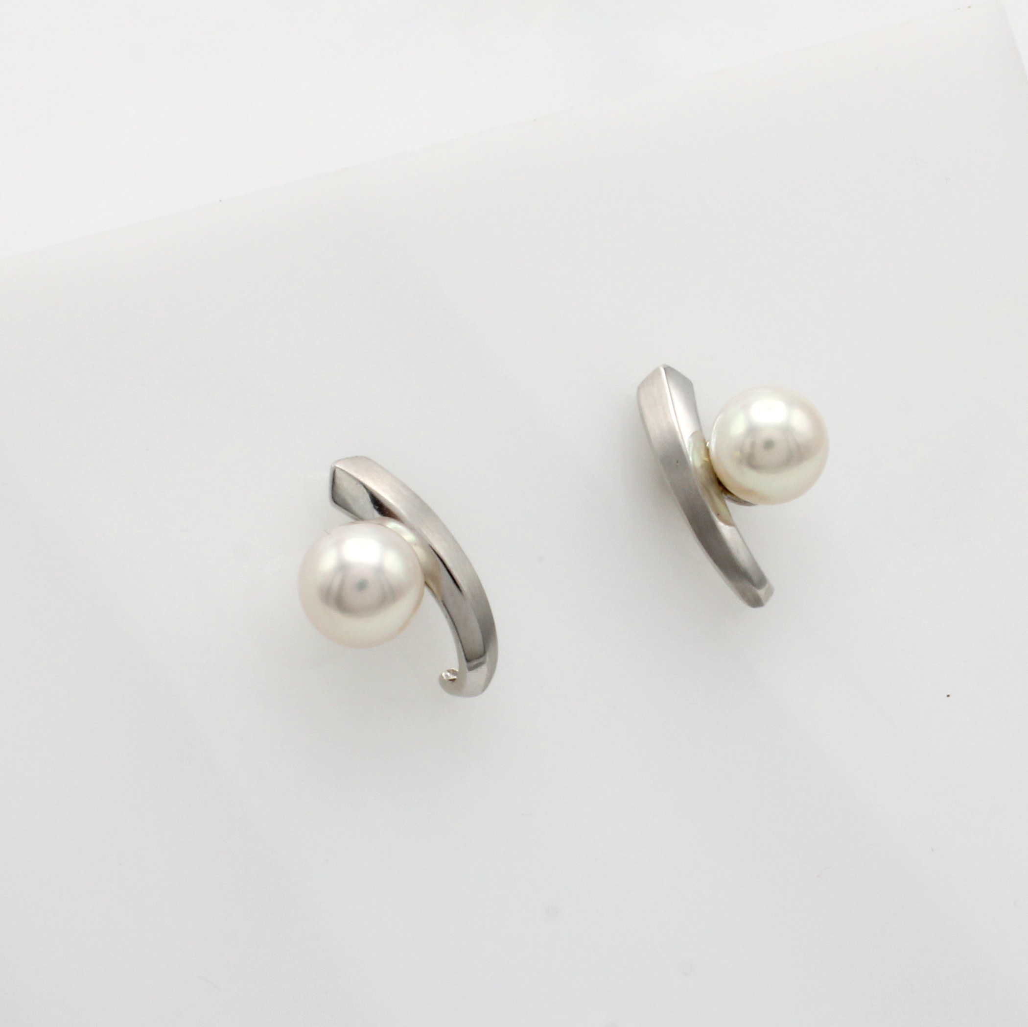 Paar Ohrstecker mit Akoyazuchtperlen, WG 585/000, weiße Perlen, D. ca. 7.5-8 mm Schätzpreis: 1200, - EUR