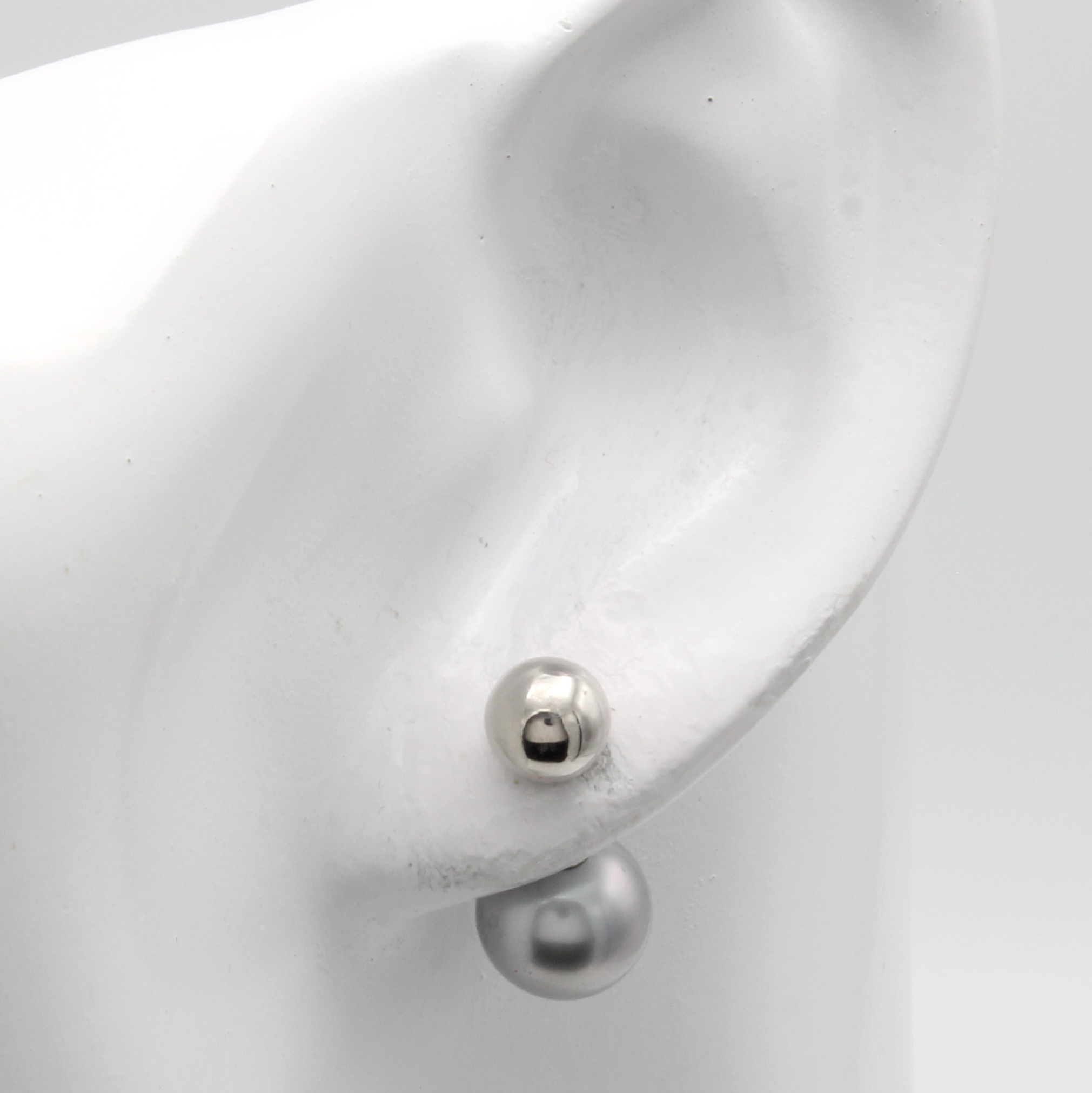 Paar Ohrstecker mit Tahitizuchtperlen, WG 585/000, silbergraue Perlen, D. ca. 8-9 mm
