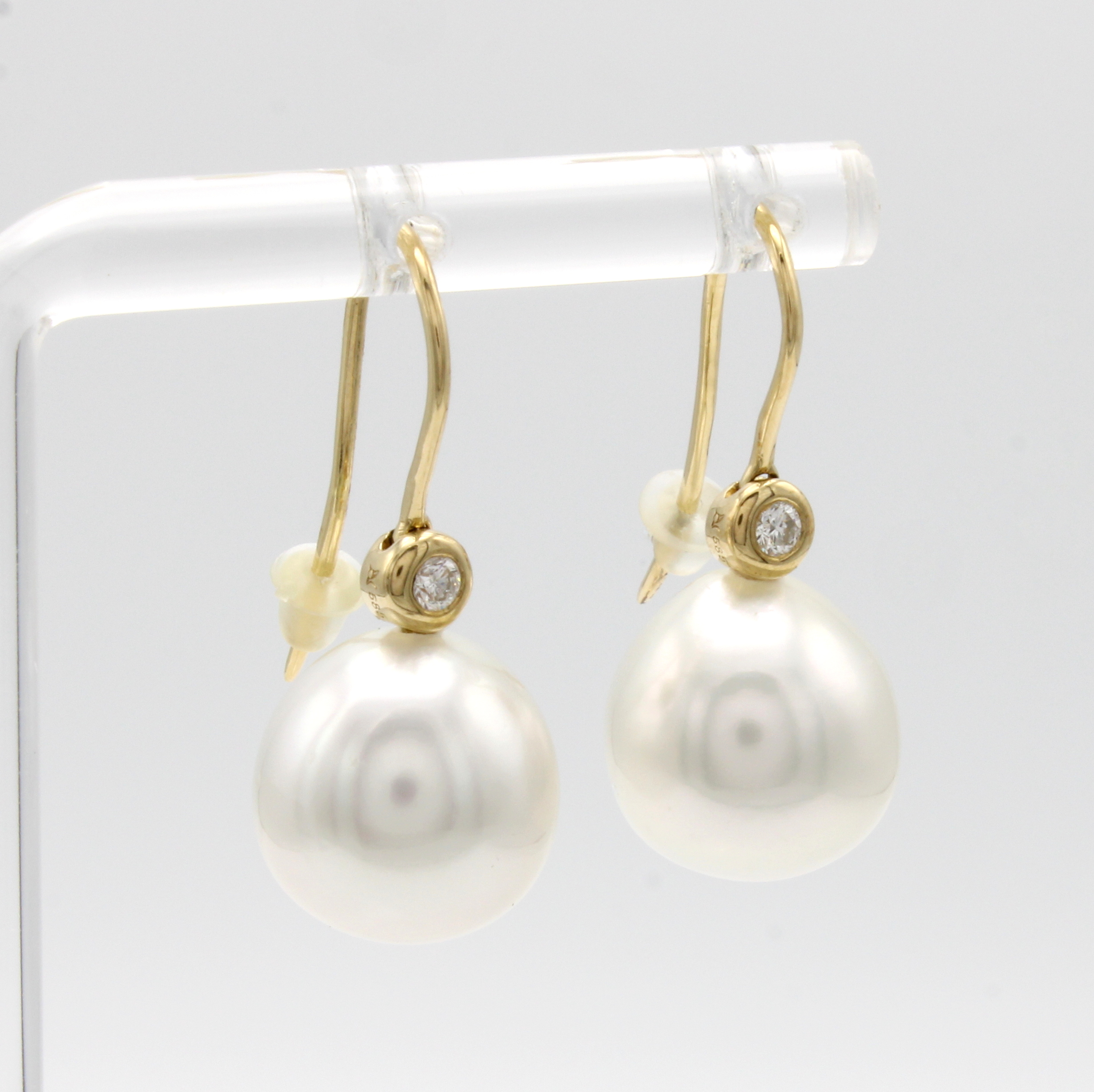 Paar Ohrgehänge mit Südseezuchtperlen und Brillanten, GG 585/000, l. tropfenf. Perlen,v. weißem Lüster, D. ca. 12-13 mm Schätzpreis: 2750, - EUR