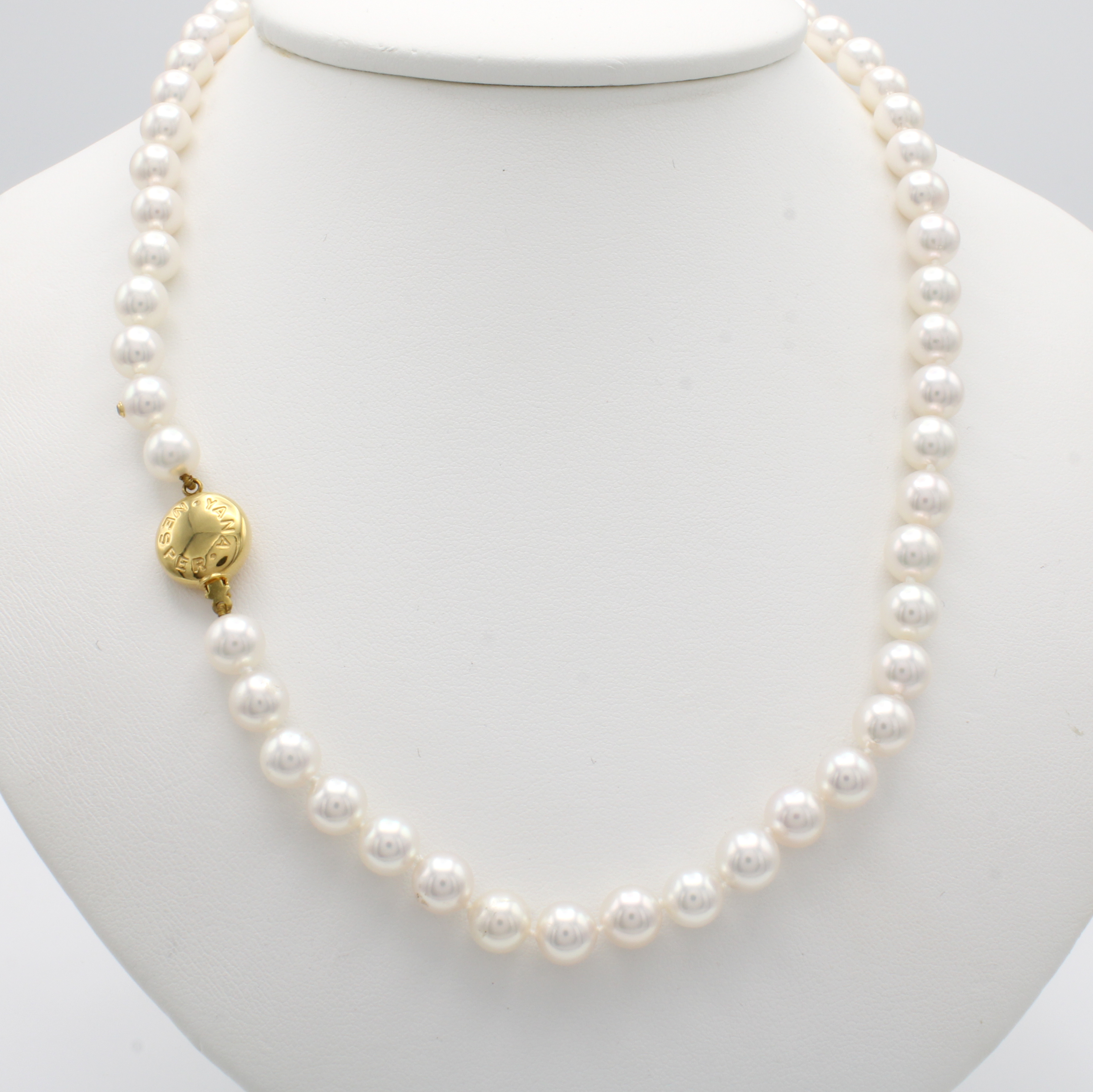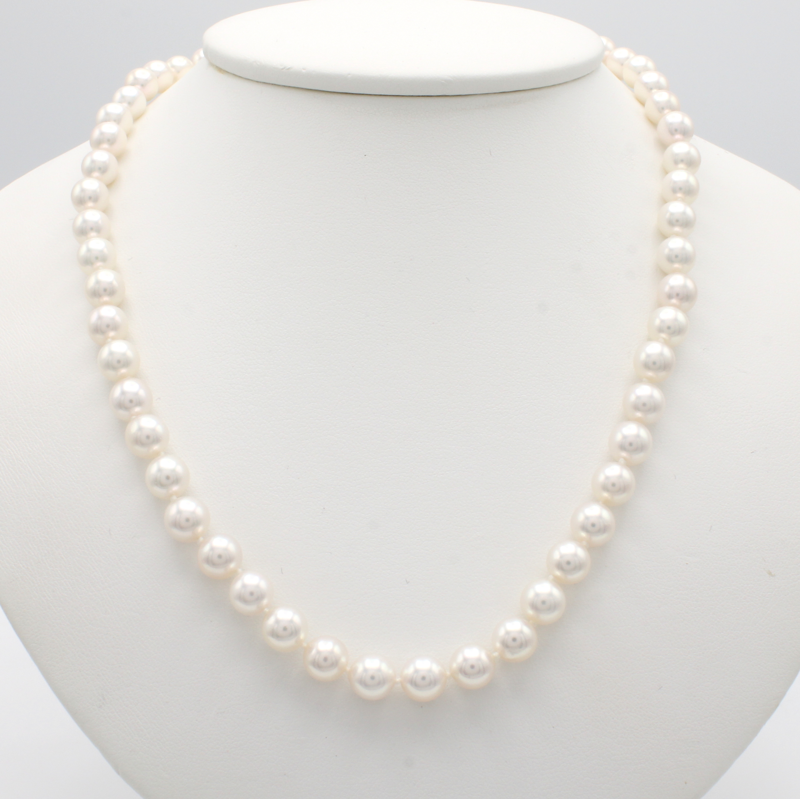 Akoyazuchtperlenkette, Schließe GG 750/000, weiße Perlen, D. ca. 7-7.5 mm, L. ca. 45 cm