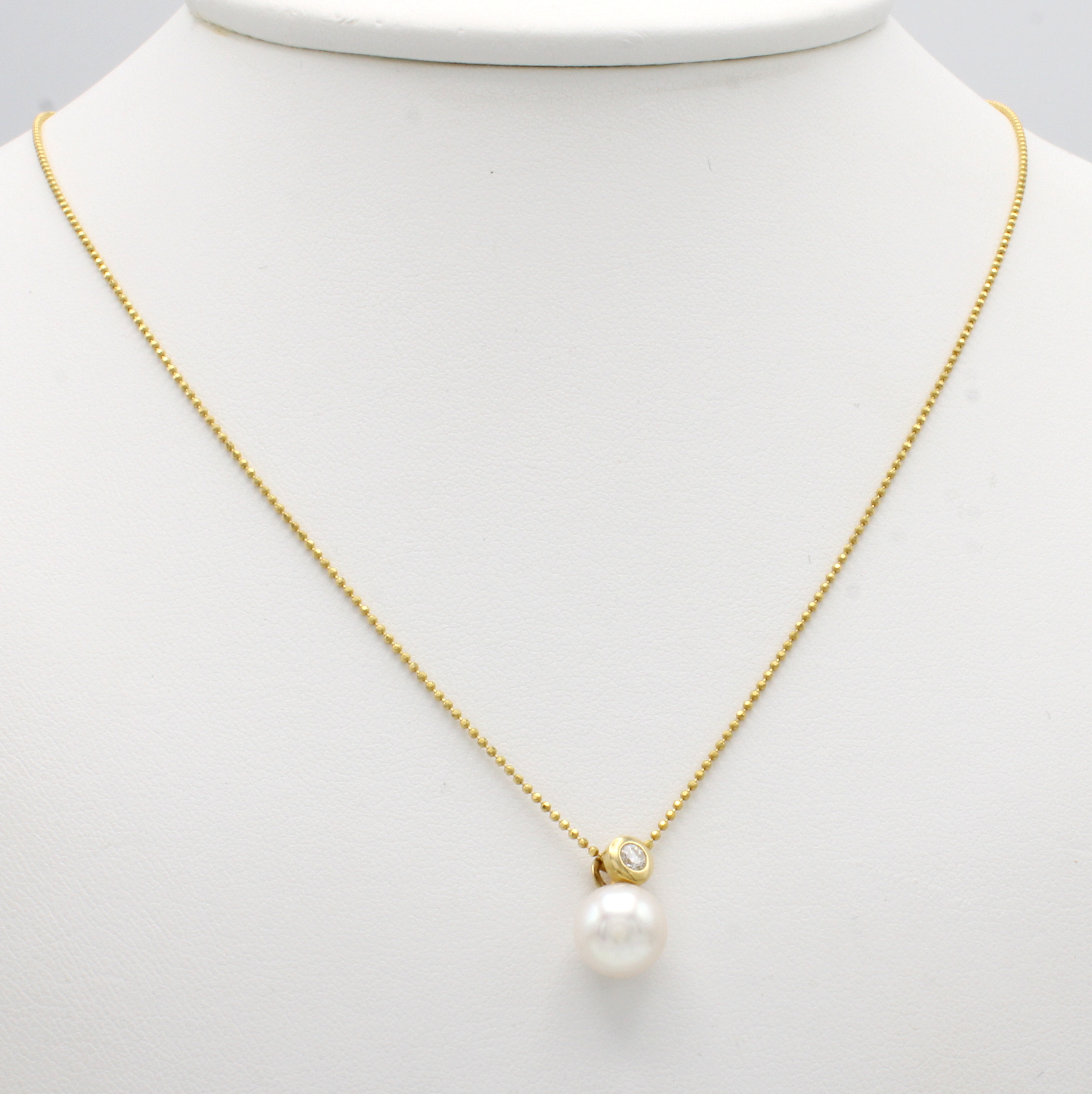 Anhänger mit Brillant und Akoyazuchtperle an Kugelkette, GG 585/000, Brill. ca.