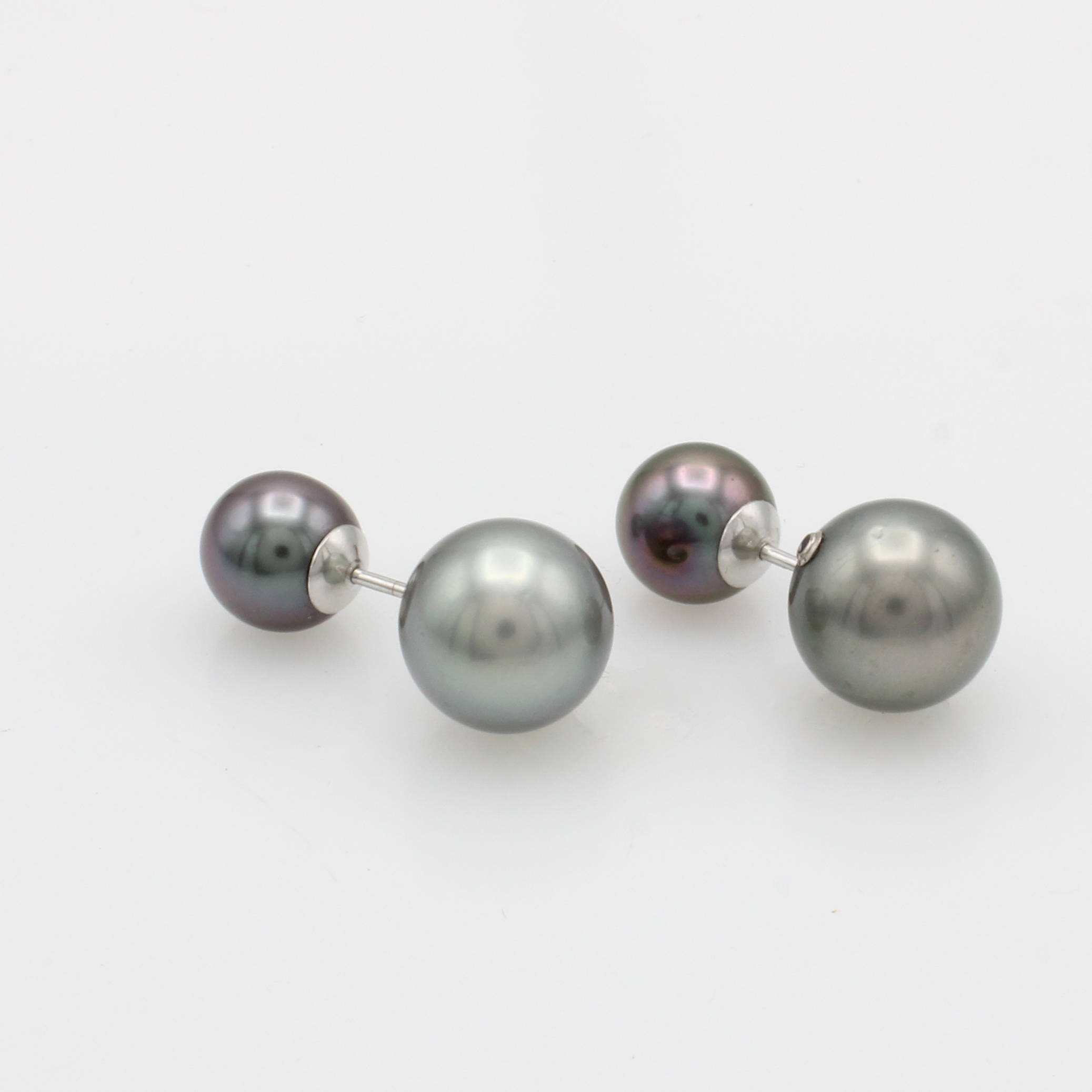 Paar Ohrstecker "Double Face" mit Tahitizuchtperlen, WG 750/000, runde Perlen v. anthrazitfarb. u. silbergrauem Lüster, D. ca. 8 u. 11 mm Schätzpreis: 2200, - EUR