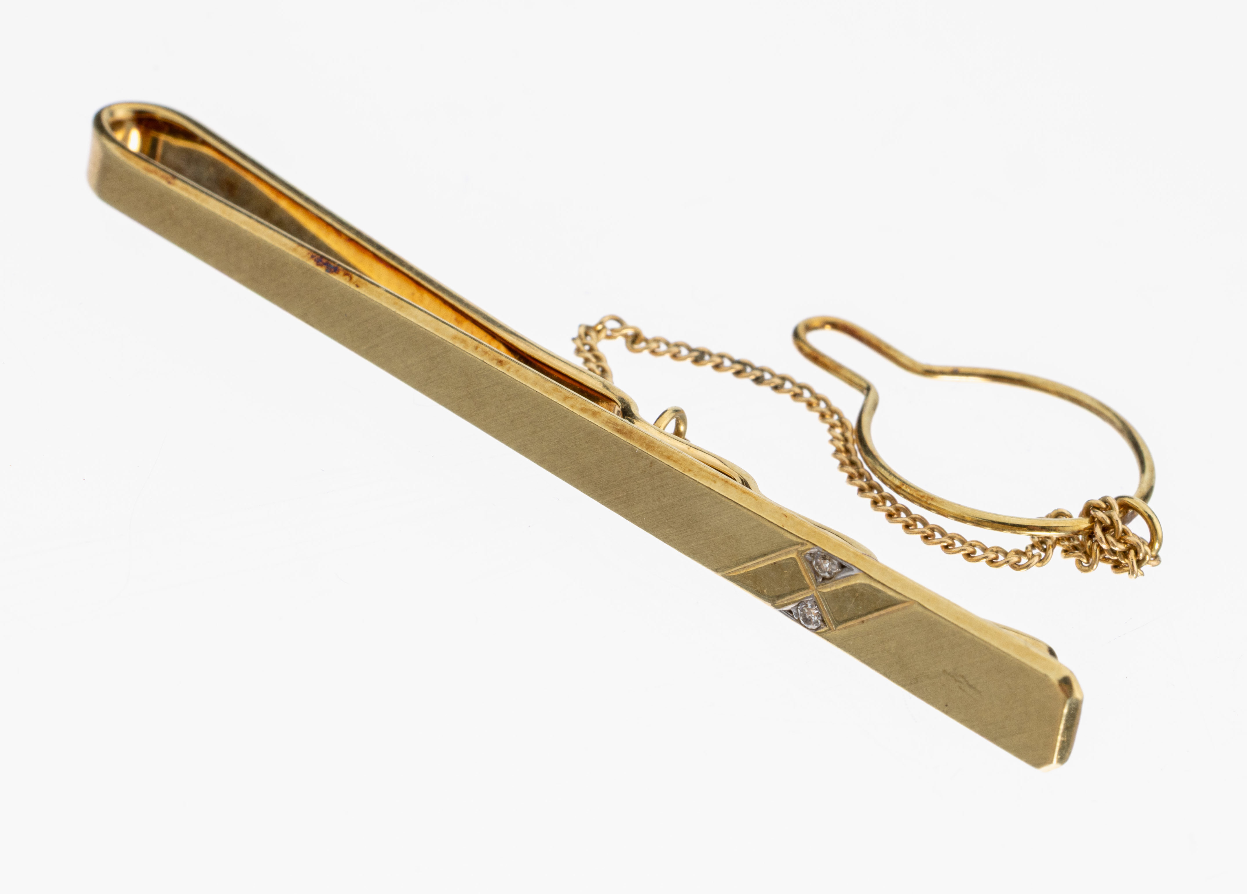 14 kt Gold Brillant-Krawattenklammer, GG 585/000, schlicht, 2 Brillanten zus. ca.