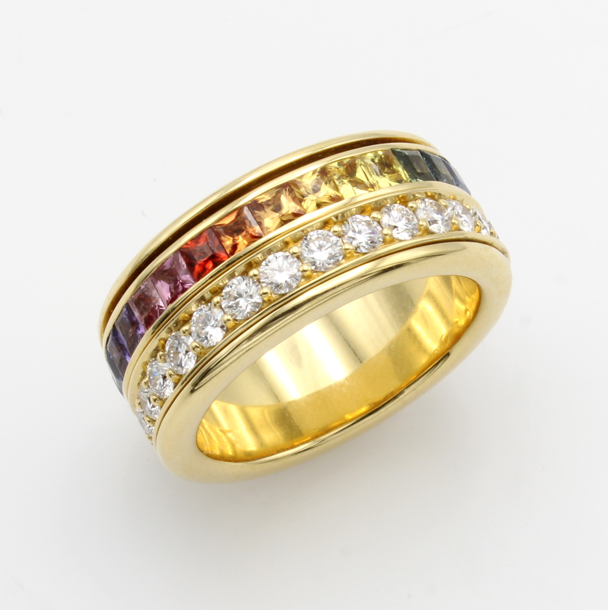 Ring mit Saphiren und Brillanten, GG 750/000, 2-rhg., drehbare Ringschiene, ein Ring