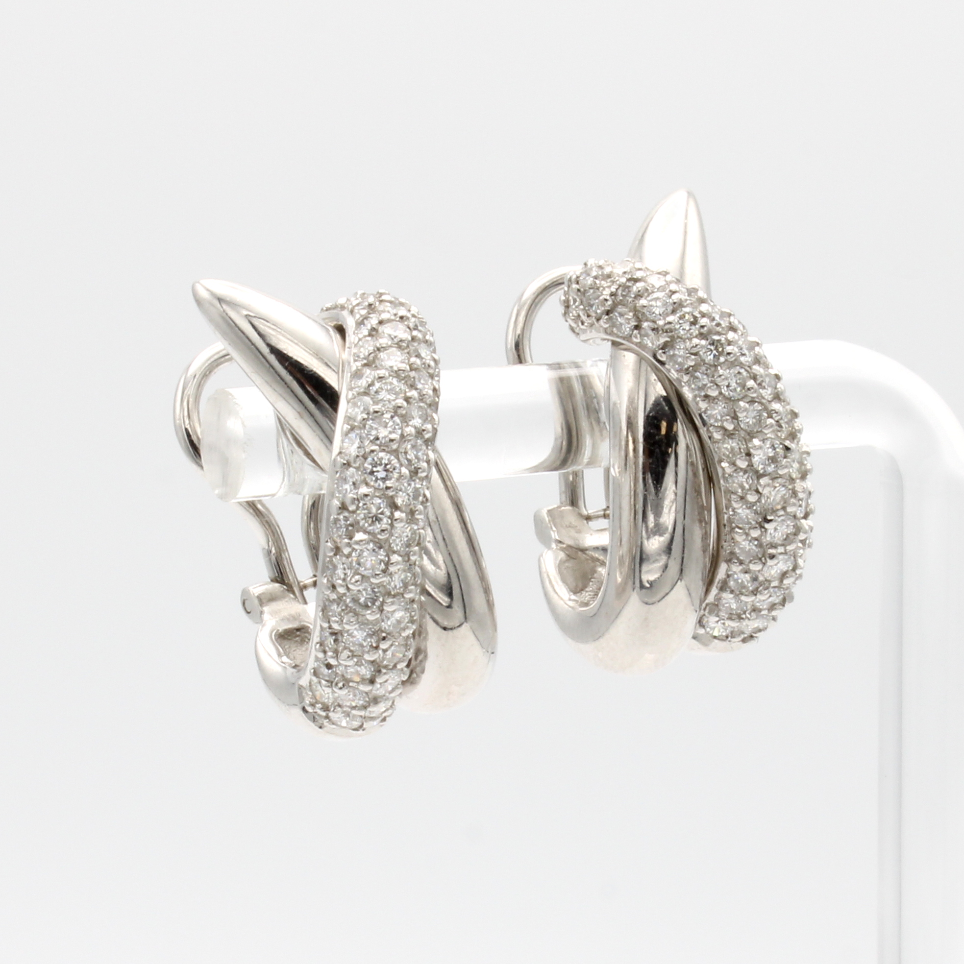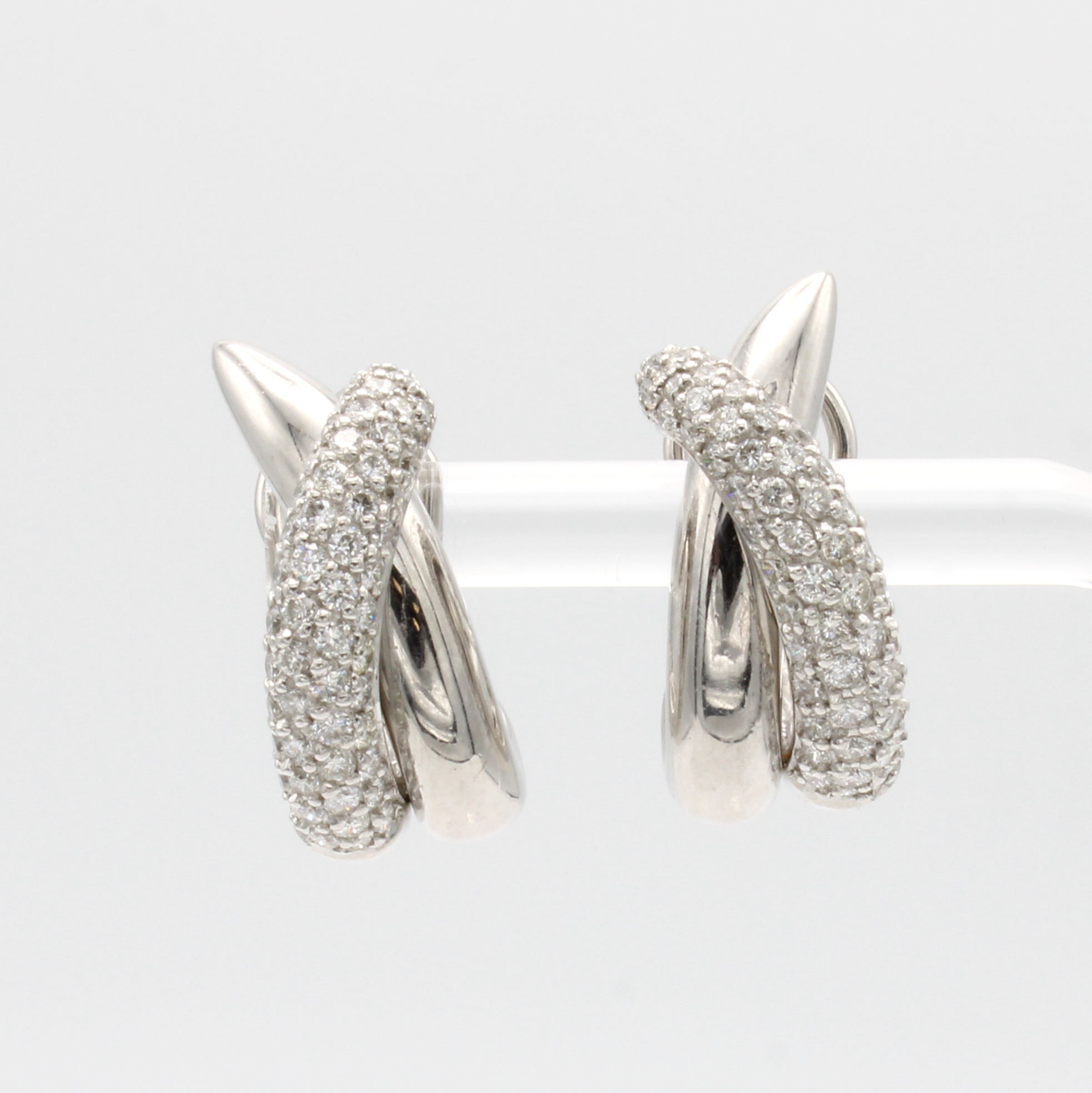 Paar Steckcreolen mit Brillanten, WG 750/000, überkreuztes Design, Brill. zus. ca. 2.15 ct Weiß/si, m. Clipbrisur Schätzpreis: 6600, - EUR