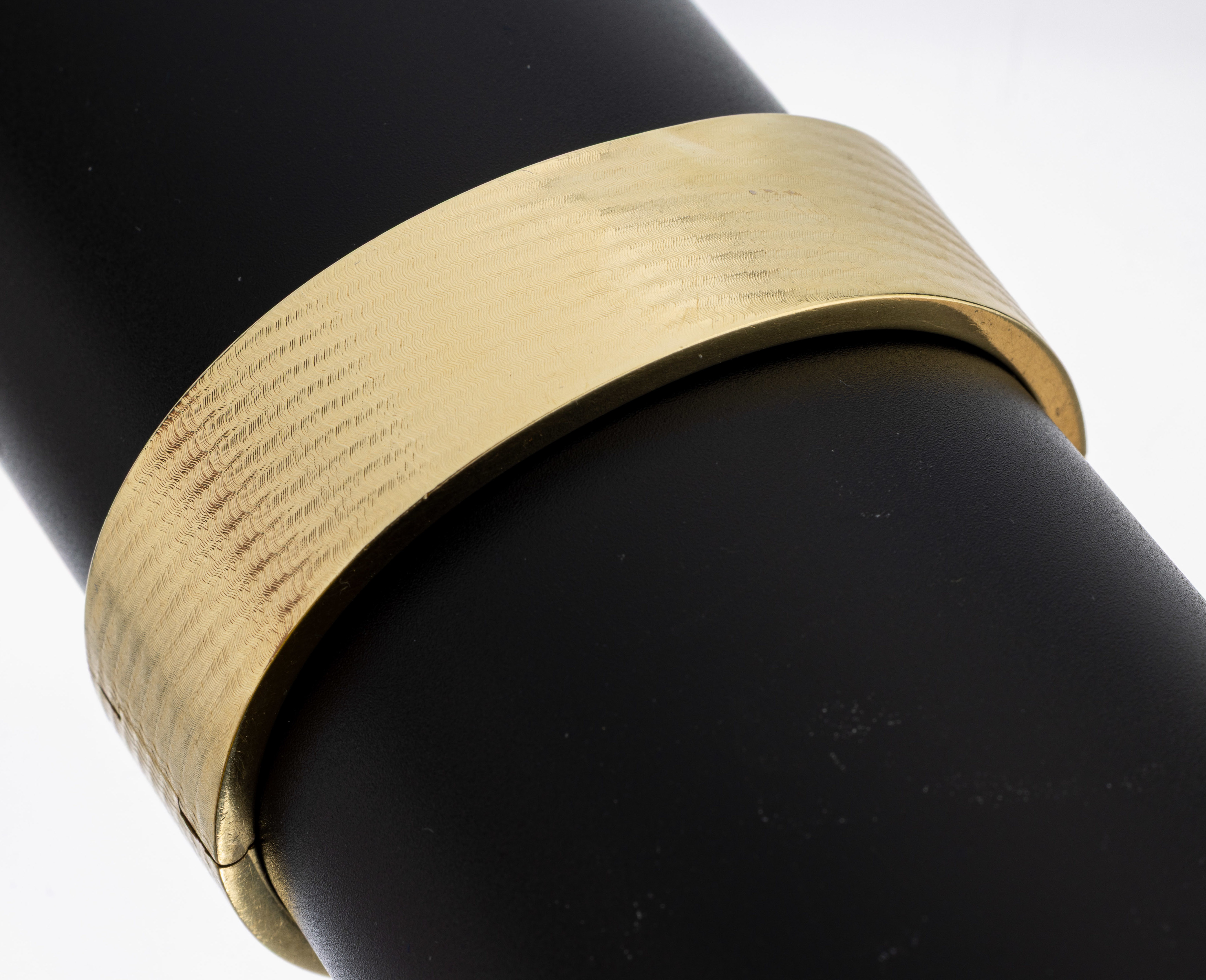 14 kt Gold Armreif, GG 585/000 gefüllt, streifenguill., ca. 6.2 x 5.3 cm, ca. 60.9
