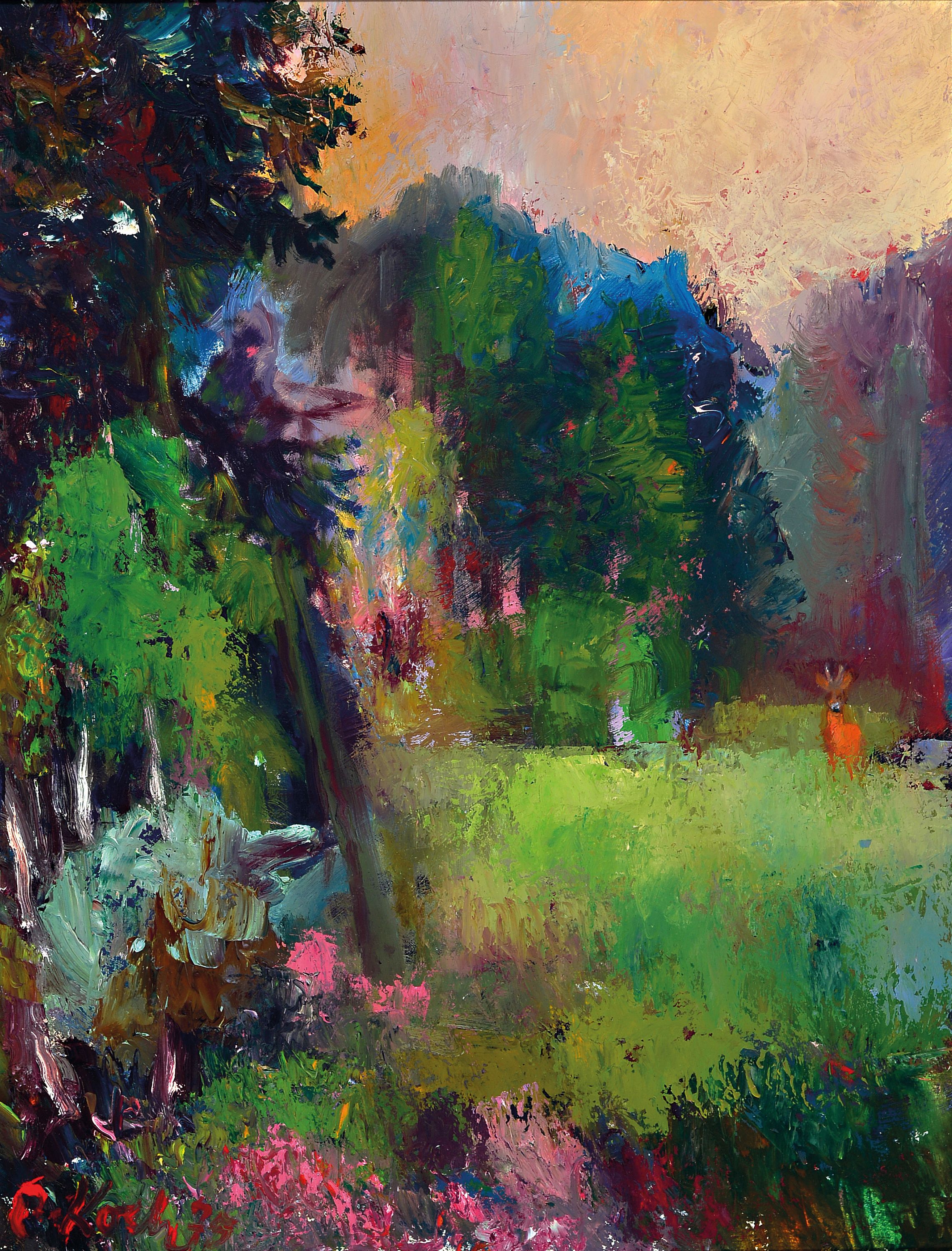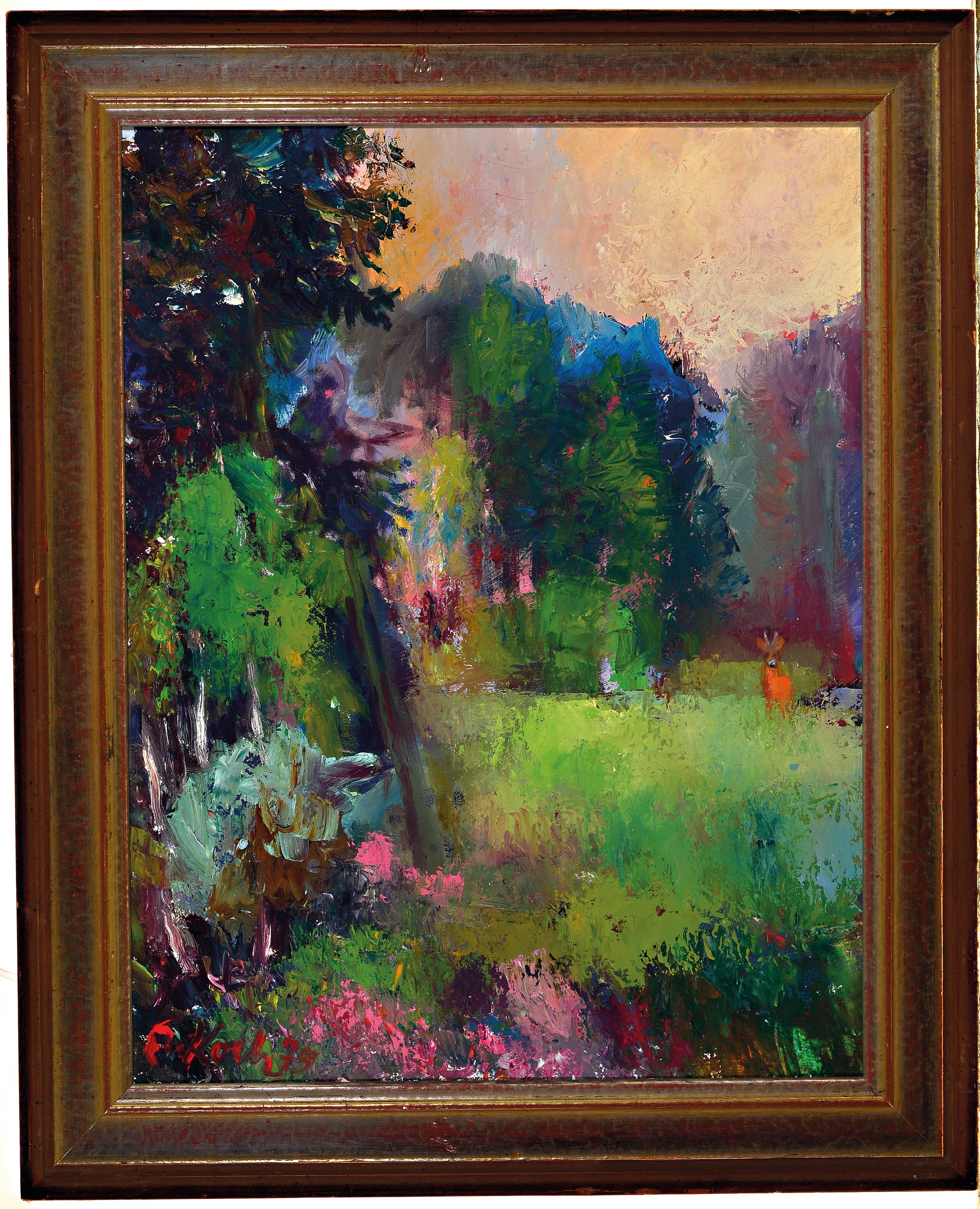 Rudolf Koch, 1902-1985, "Auf der Kanzel", Jagdbild, 1939, signiert und datiert, Öl/Platte,