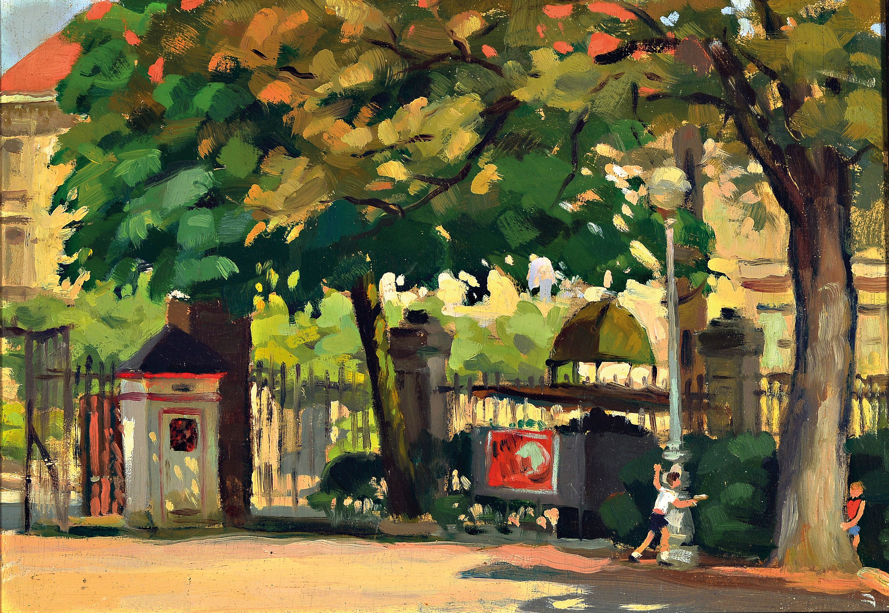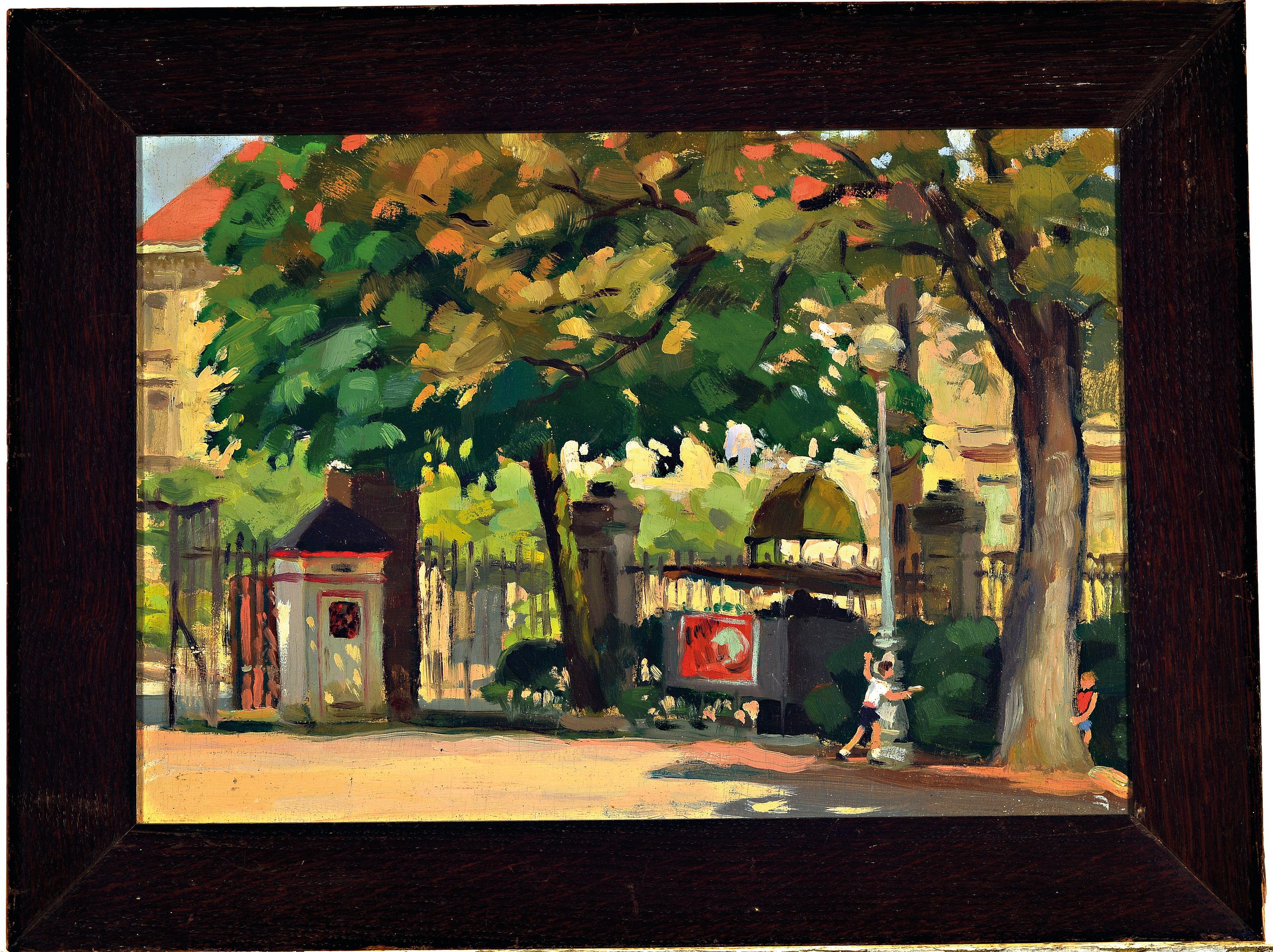 in Lyon mit spielenden Kindern, Öl/Holz, unsigniert, 26x36 cm, Rahmen 33x43 cm
