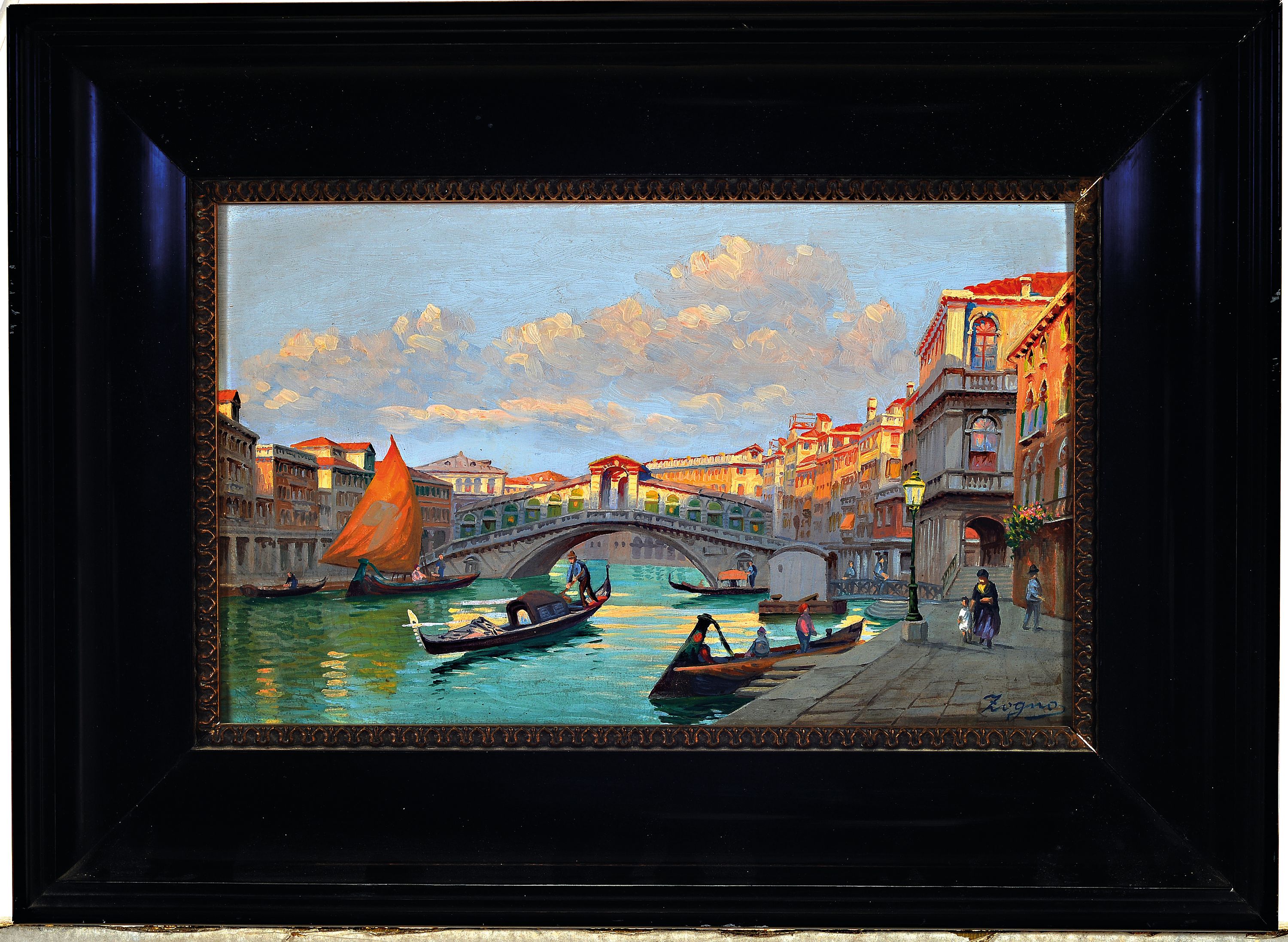 Signiert Zogno, italienisch, Ende 19.Jh., Ansicht aus Venedig, Blick auf die Ponte