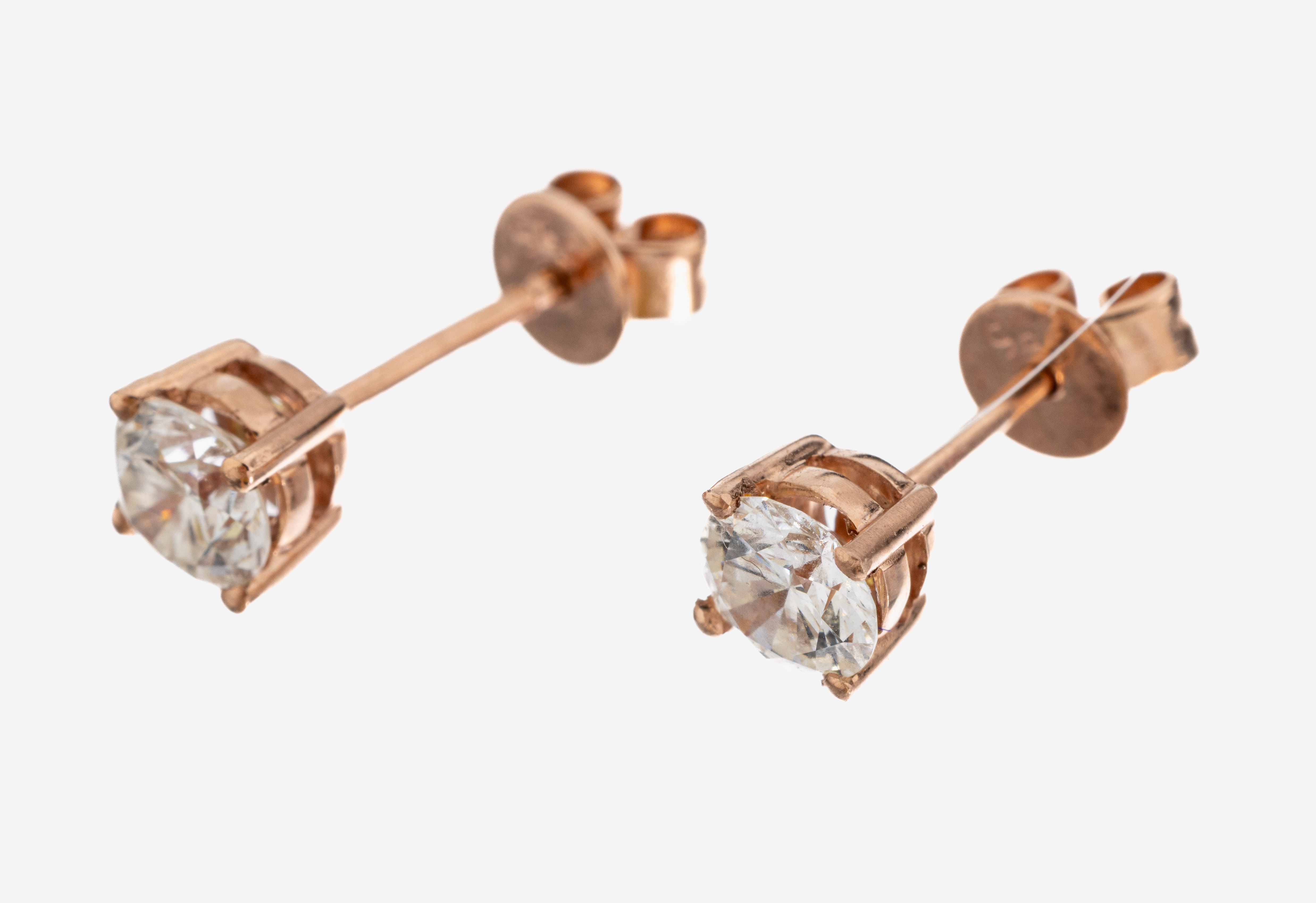 Paar 14 kt Gold Brillant-Ohrstecker, RoseG 585/000, 2 Brillanten zus. ca. 0.82 ct