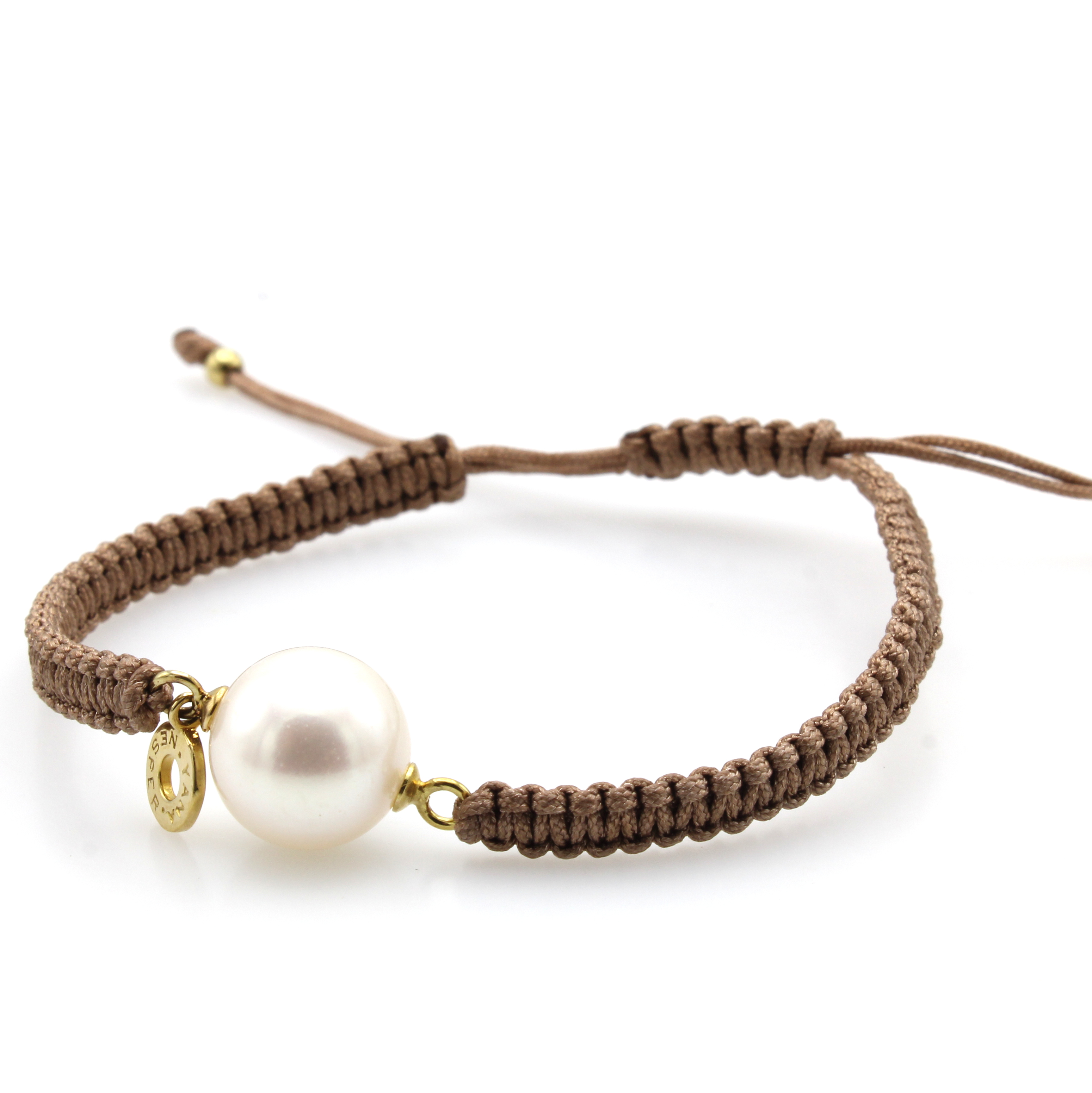 Makrameéarmband mit Süßwasserzuchtperle, GG 585/000, weiße Perle, D. ca. 11 mm