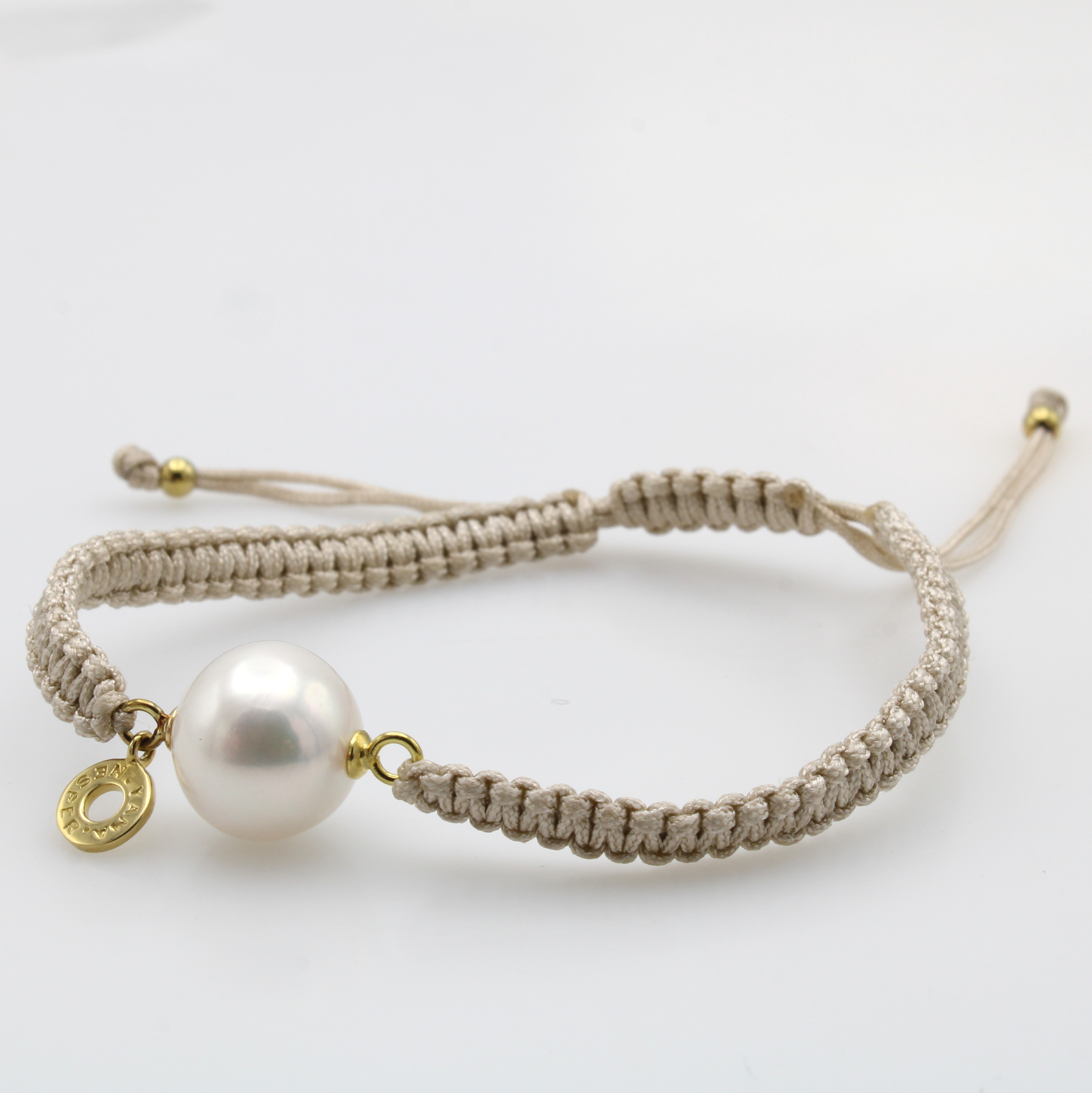Makrameéarmband mit Süßwasserzuchtperle, GG 585/000, weiße Perle, D. ca. 11 mm