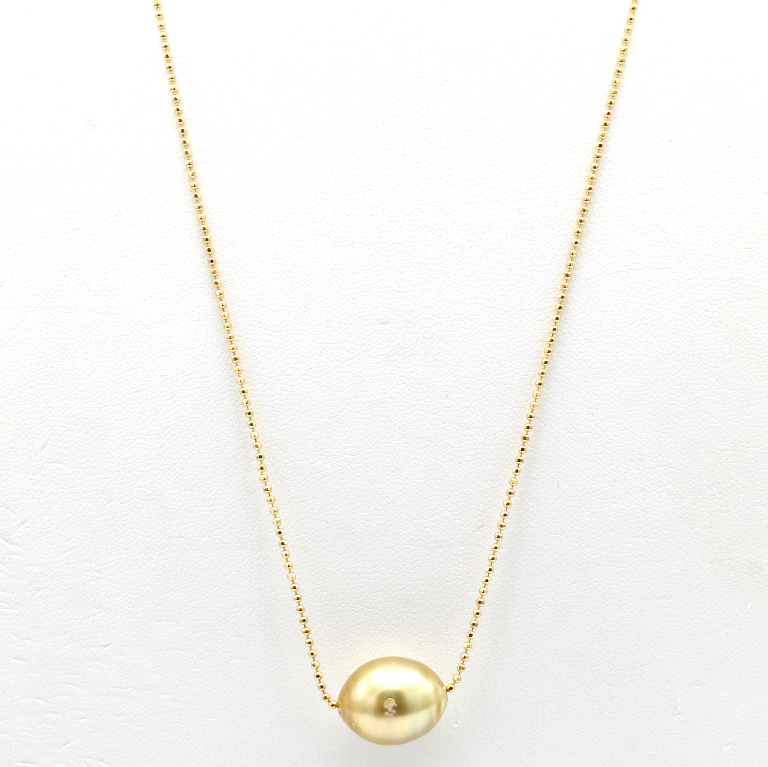 Kette mit Südseezuchtperle, 925er Silber verg., barocke Perle v. goldfarb. Lüster, D. ca. 10-13 mm, L. ca. 50 cm, durch Schieber verstellbar