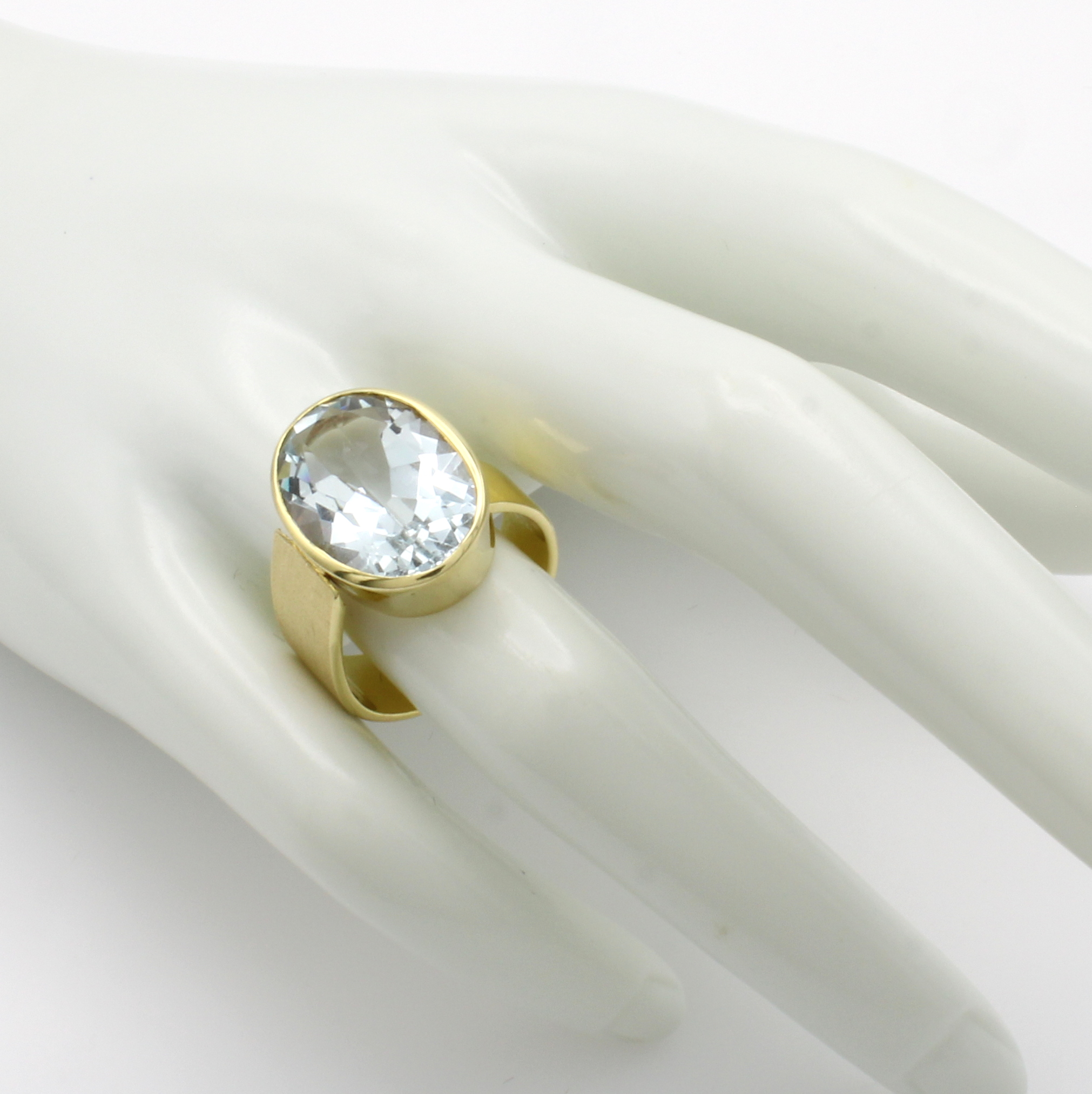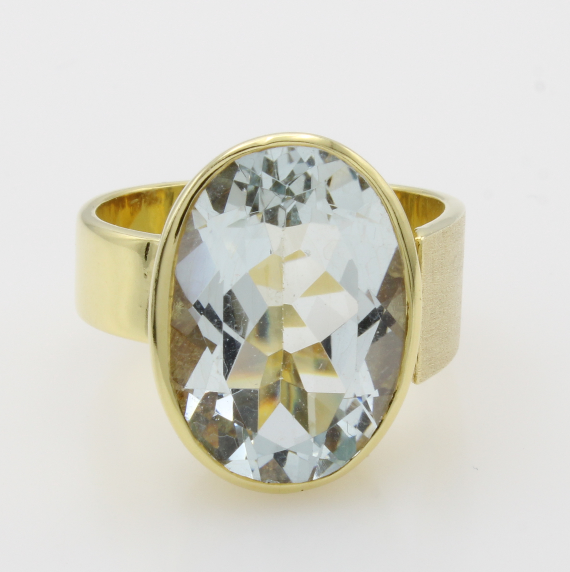 Ring mit Aquamarin, GG 585/000, ovaler Aquam. ca. 12 ct, Schiene z.T. matt. u. asymmetrisch anges., RW ca. 55 Schätzpreis: 3230, - EUR