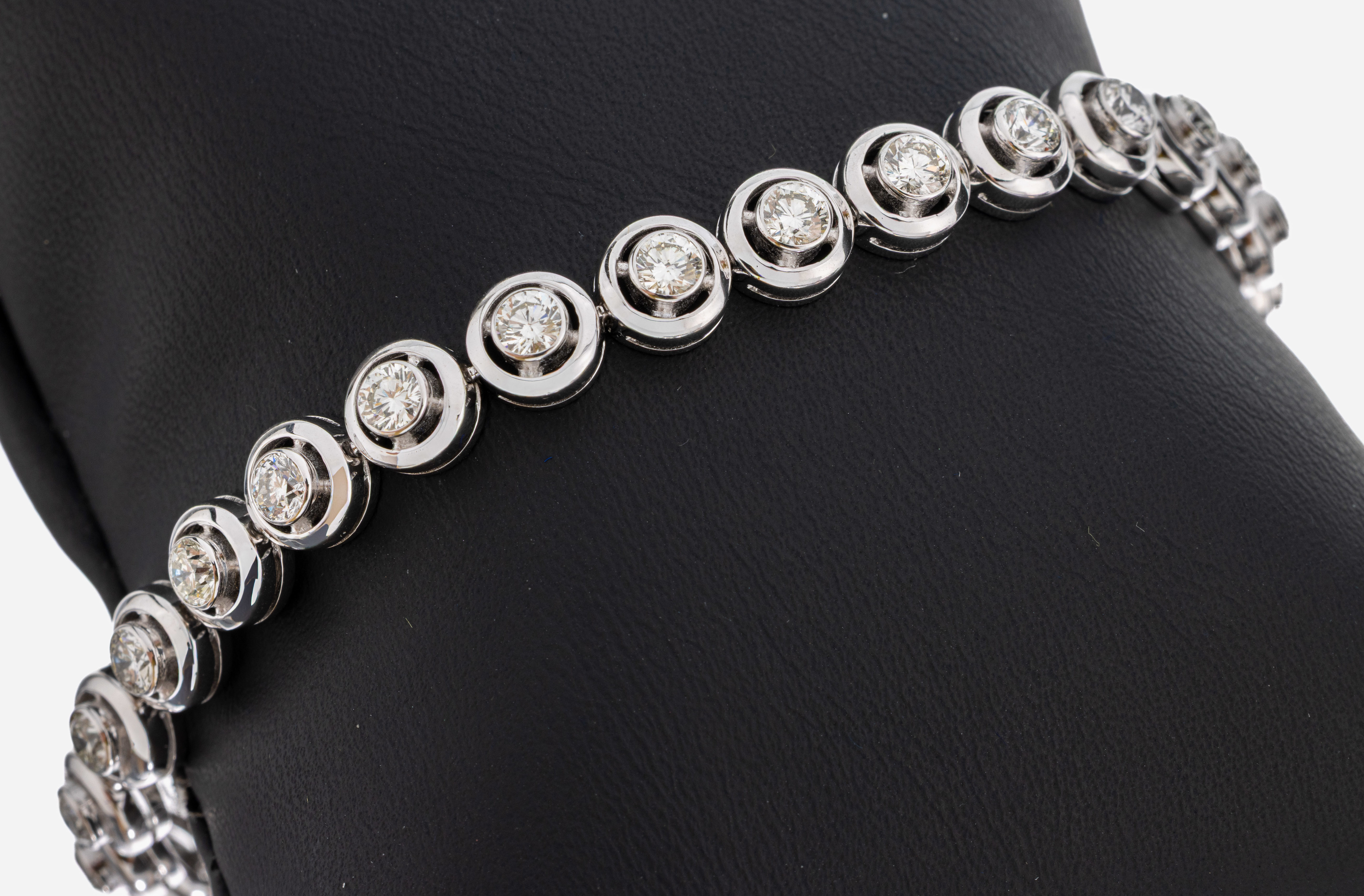 18 kt Gold Brillant-Armband, WG 750/000, 29 Brillanten zus. ca. 5.0 ct Weiß- l.get.Weiß/si,
