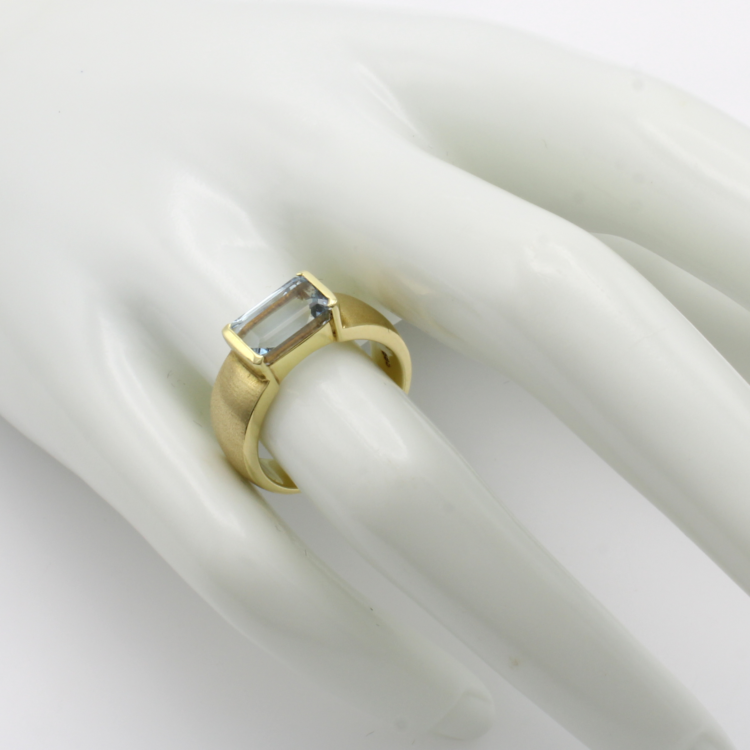 Ring mit Aquamarin, GG 585/000, Aquam. im Baguetteschl. ca. 2.2 ct, Schiene z.T. matt., RW ca. 53 Schätzpreis: 2400, - EUR