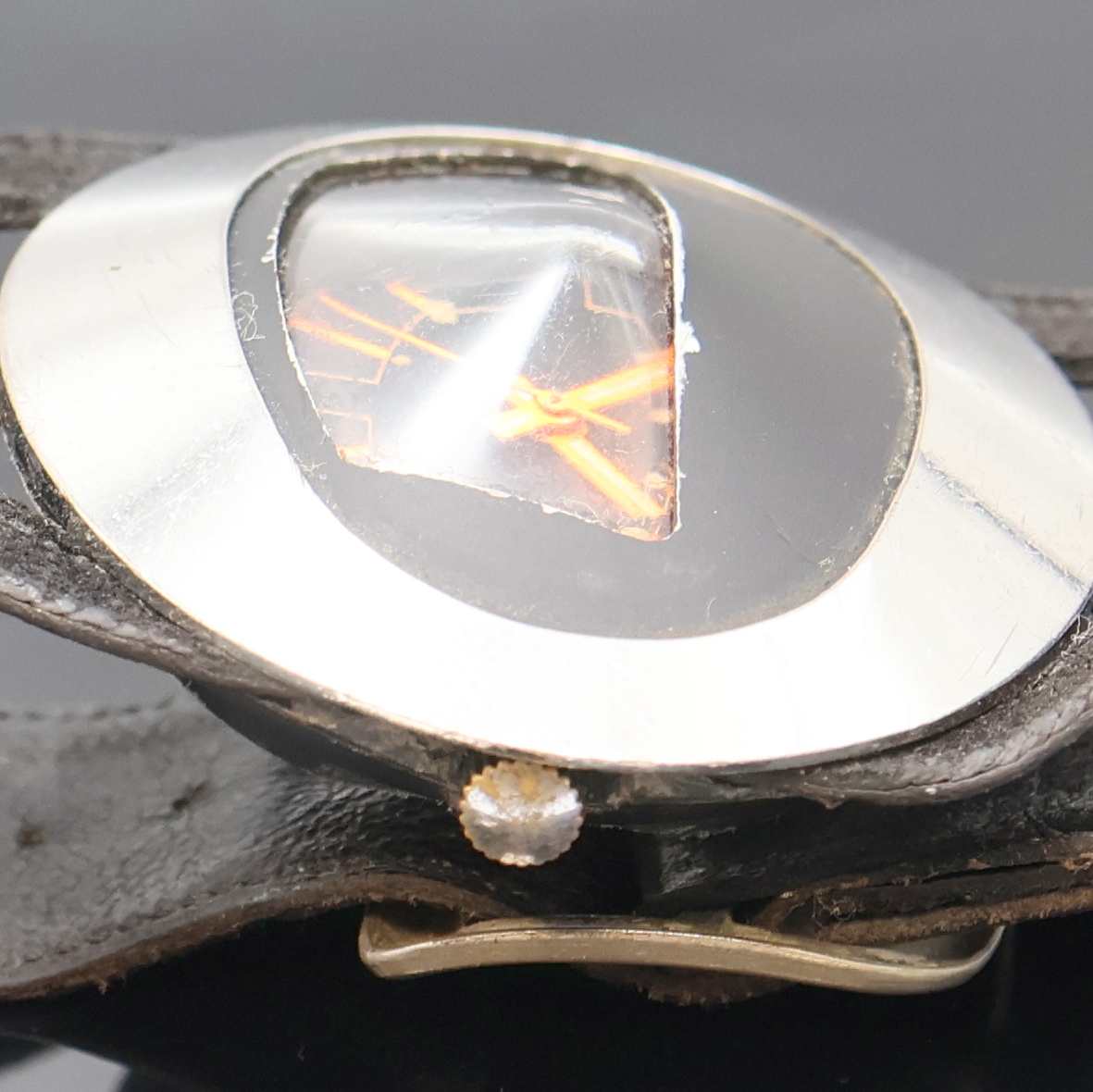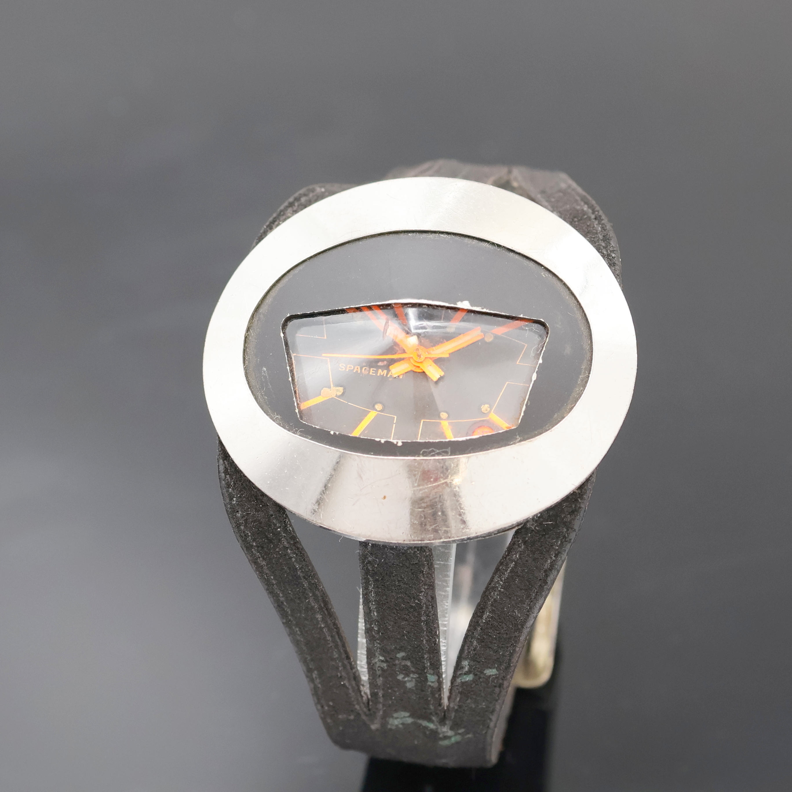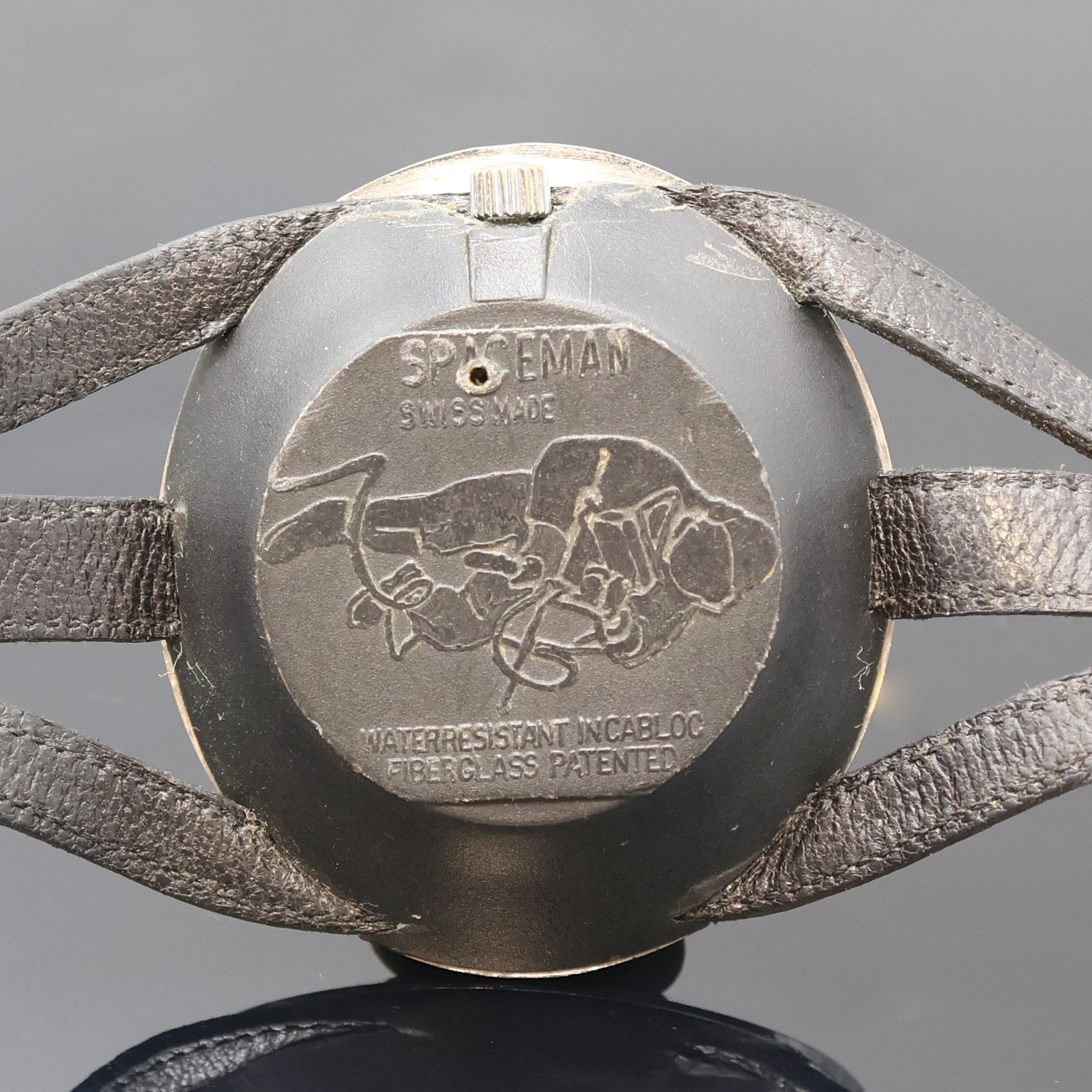 SPACEMAN ausgefallene Herrenarmbanduhr im Astronautendesign, Schweiz um 1970, Handaufzug,