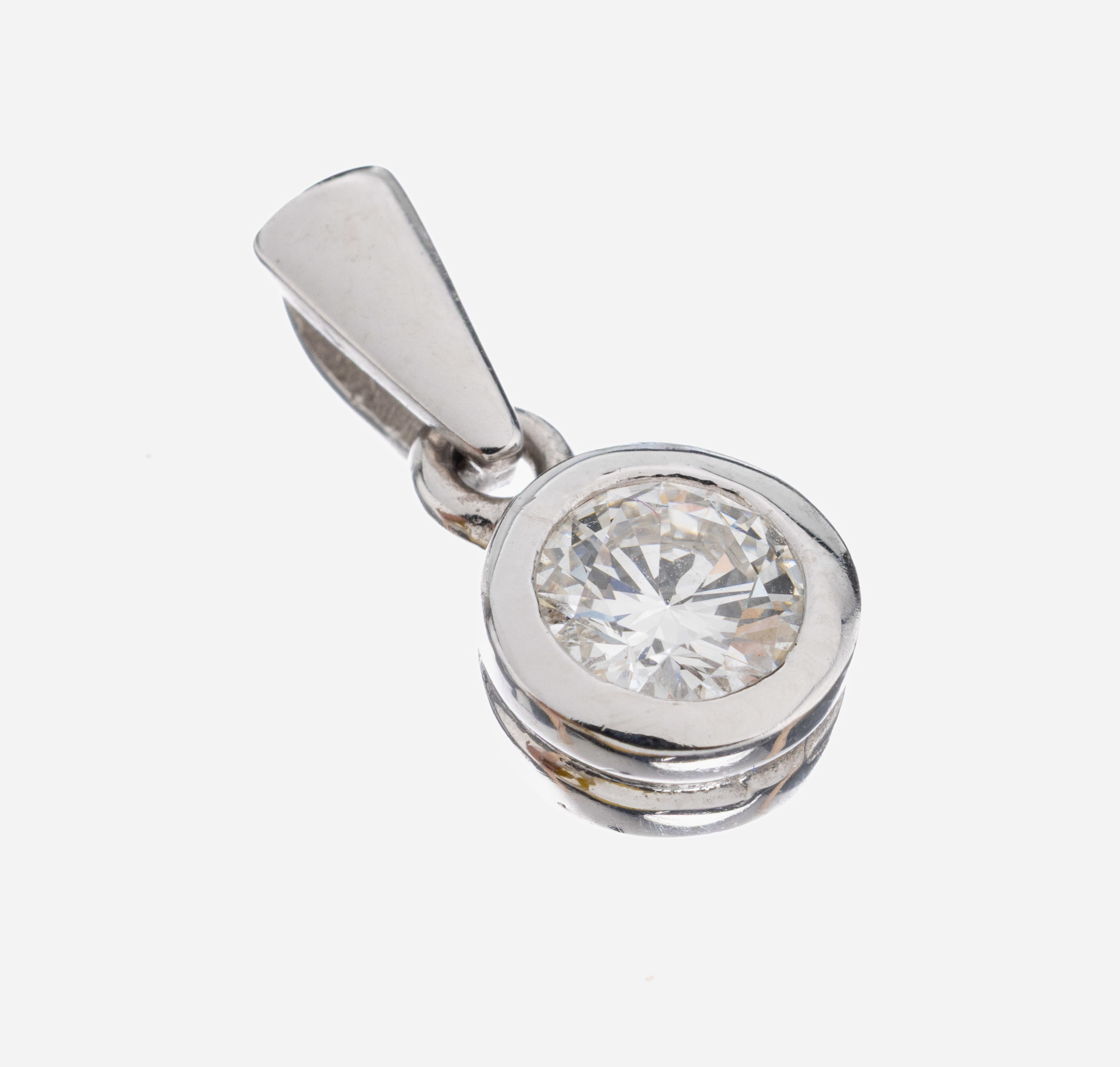 14 kt Gold Brillant-Anhänger, WG 585/000, schlicht, Brillant in Zargenfassung ca.