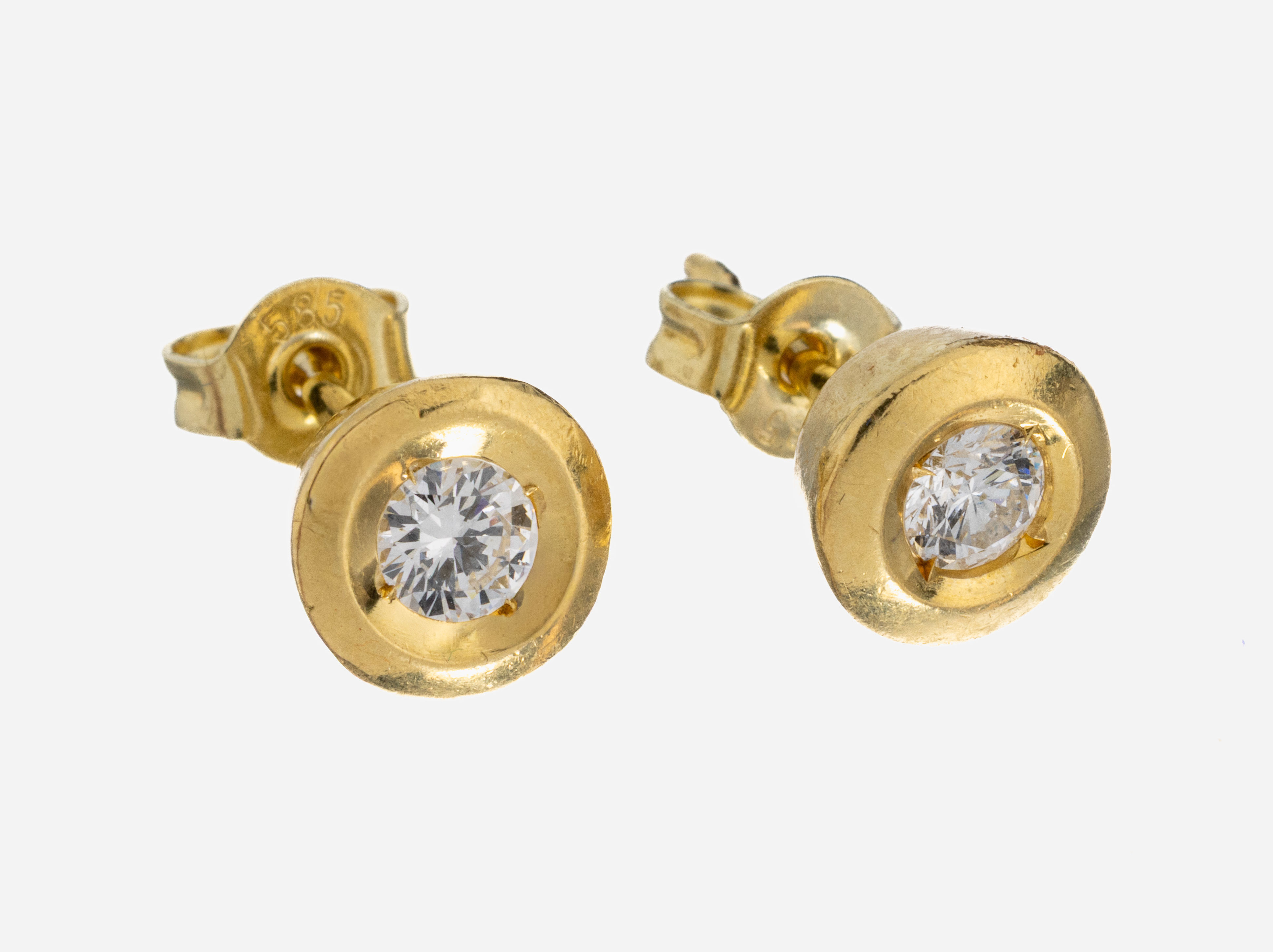 Paar 14 kt Gold Brillant-Ohrstecker, GG 585/000, 2 Brillanten zus. ca. 0.45 ct Weiß/si,