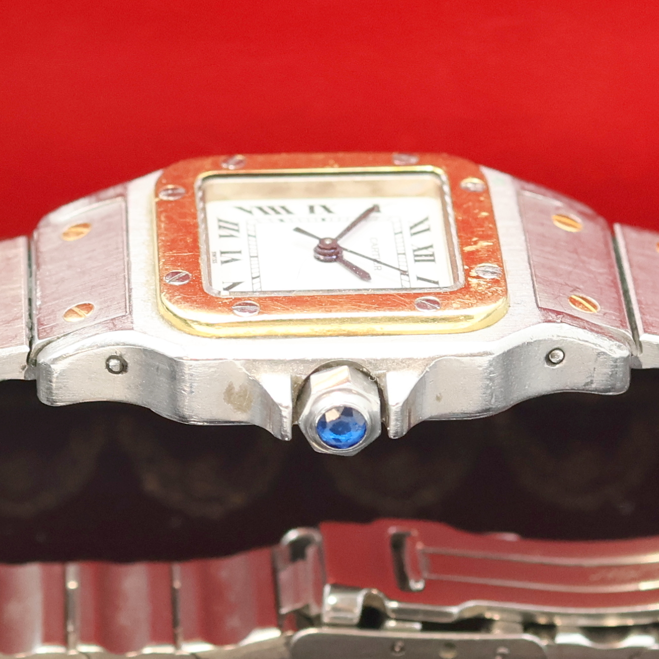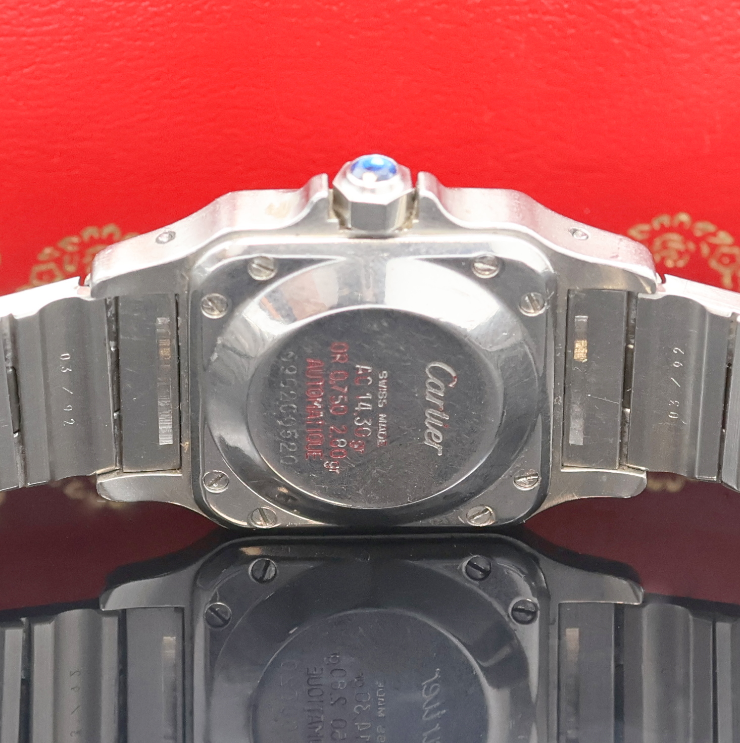 CARTIER Santos Damenarmbanduhr, Schweiz um 1990, Automatik, Edelstahlgeh. inkl. orig.