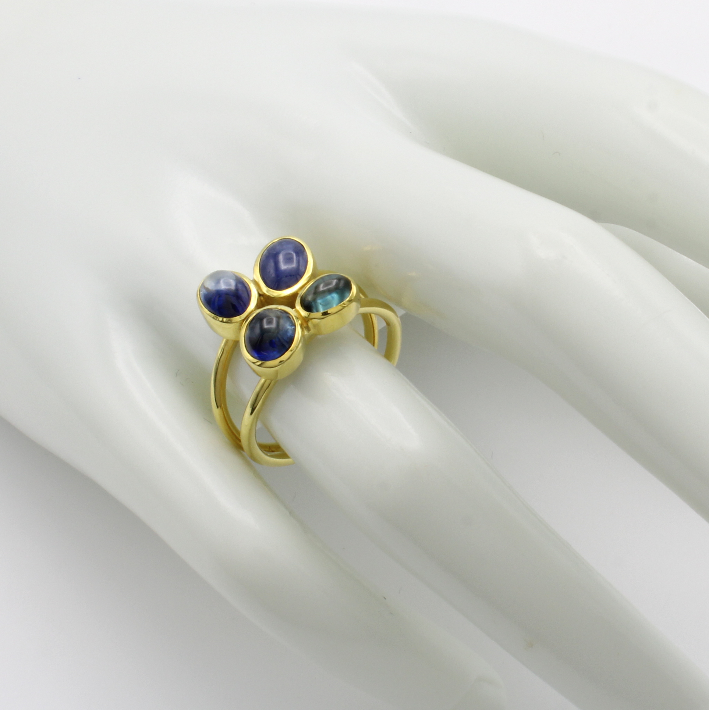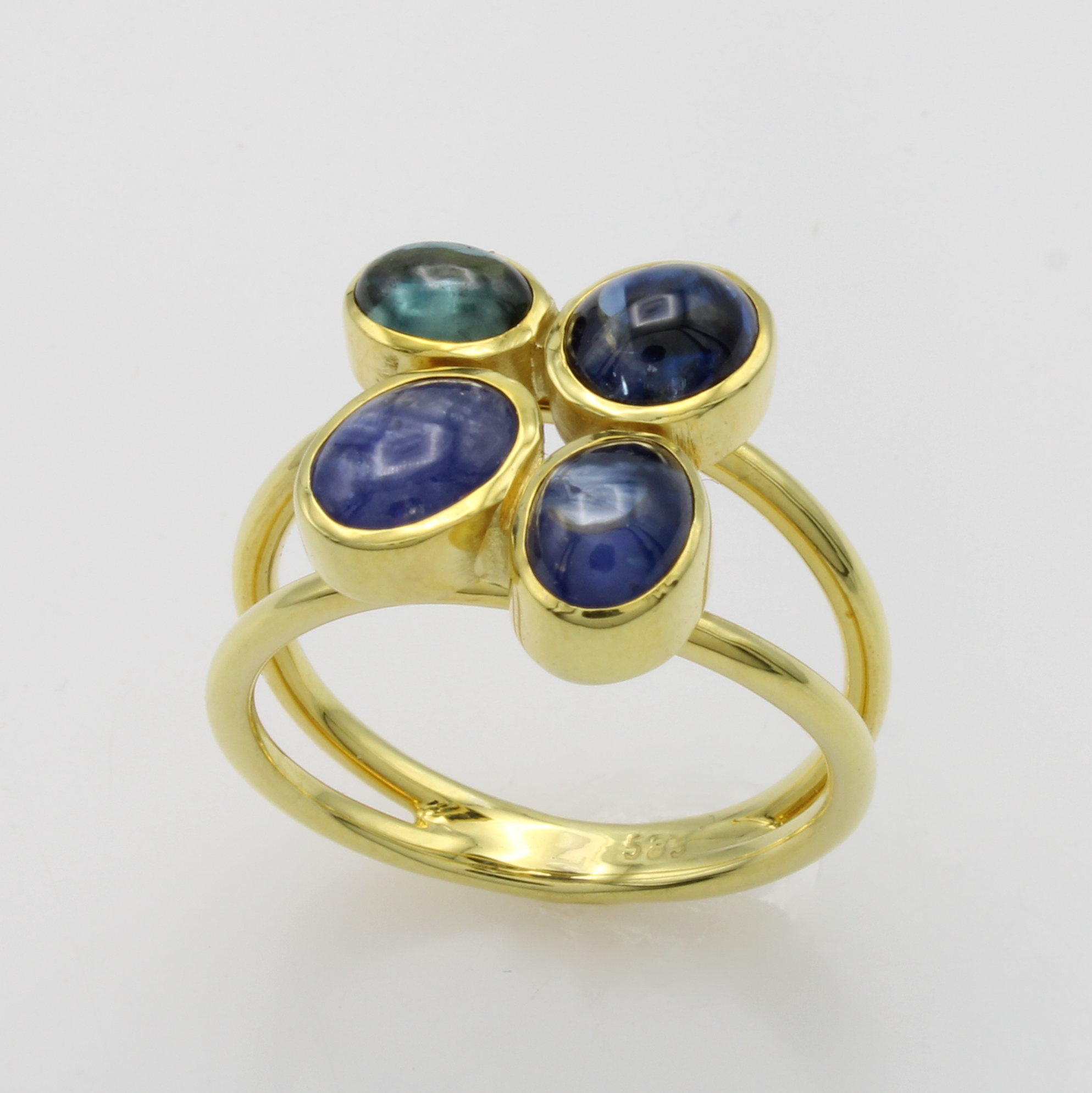 Ring mit Saphiren, GG 585/000, 4 ovale Saphircabochons zus. ca. 5 ct, 2-reihige Schiene, RW ca. 55 Schätzpreis: 1780, - EUR