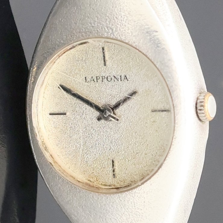 LAPPONIA Designer-Damenarmbanduhr in 925er Silber, Schweiz um 1985, quarz, Boden