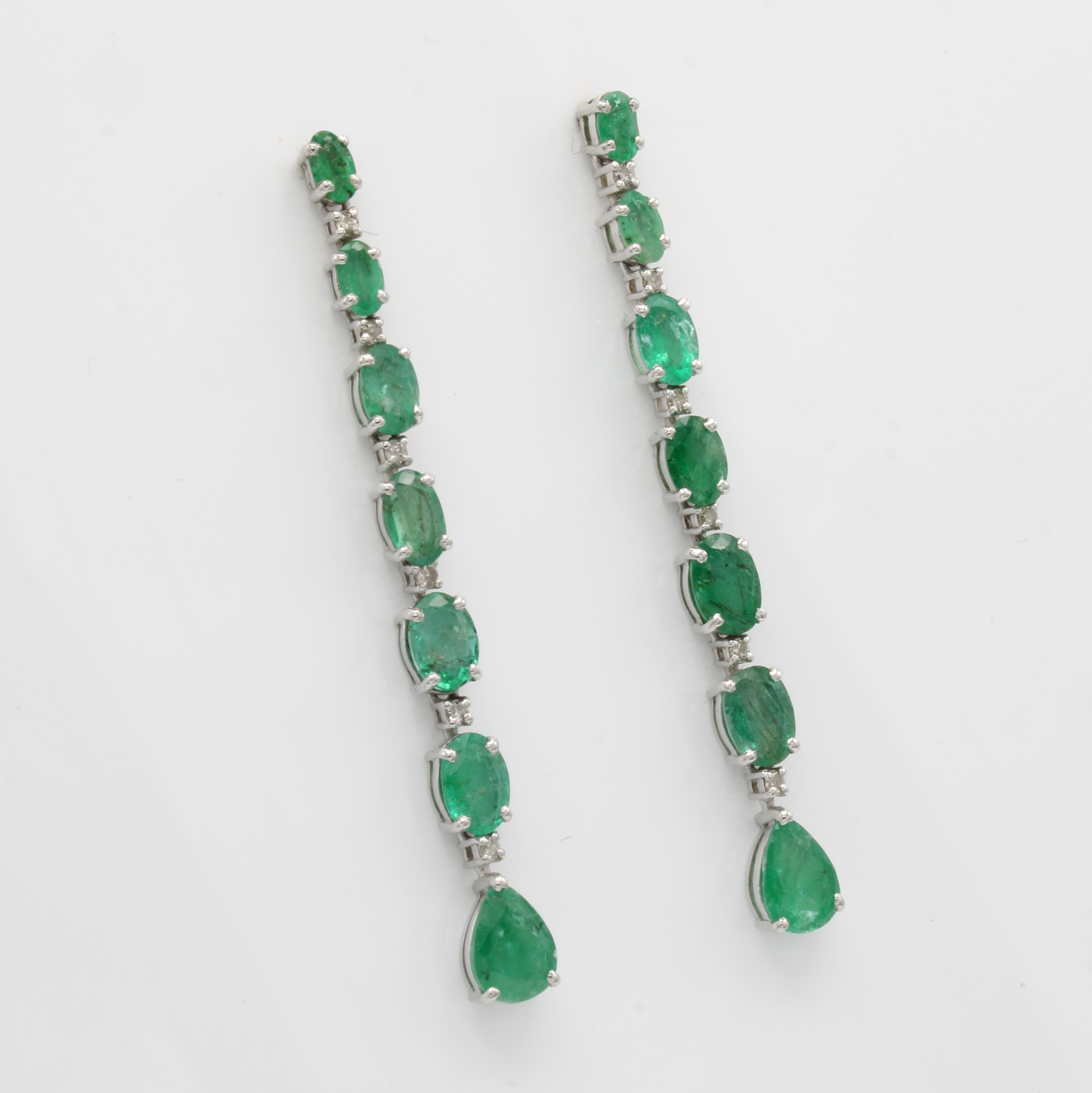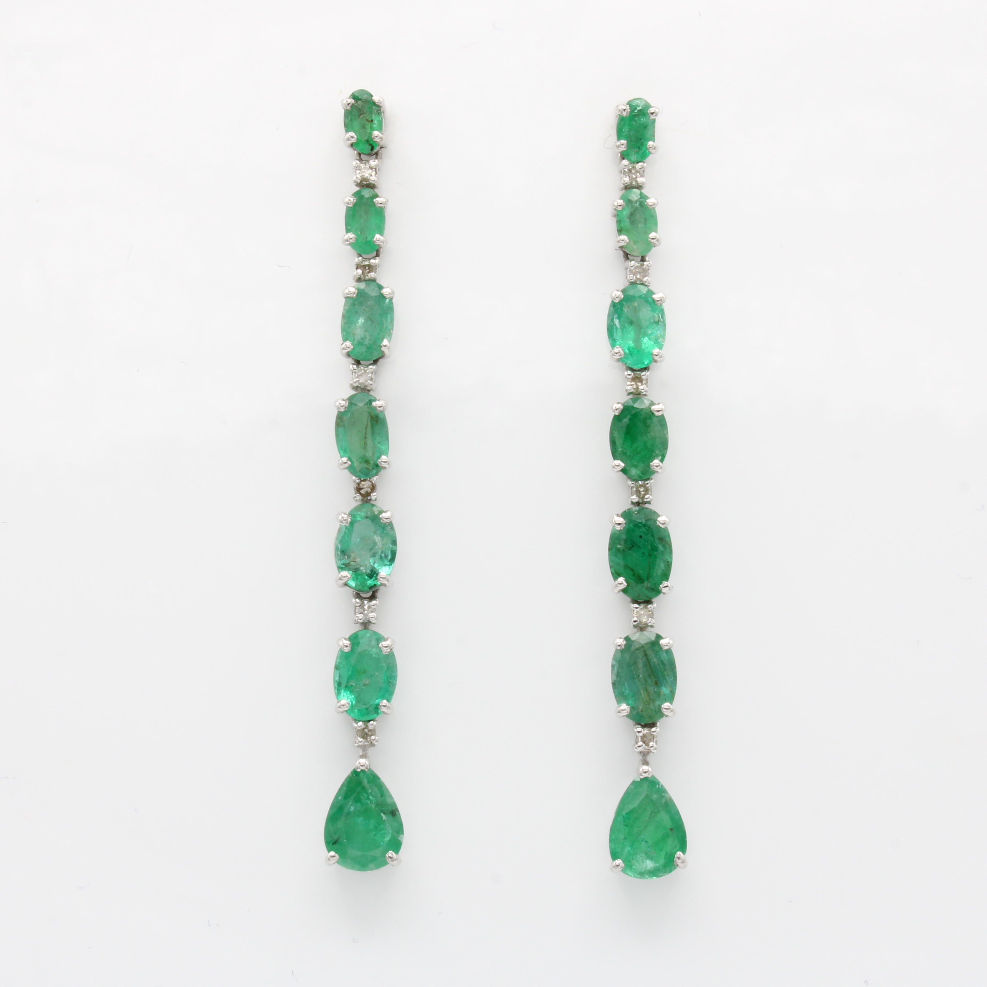 Paar Ohrstecker mit Smaragden und Diamanten, 925er Silber, ovale u. tropfenförm. Smaragde zus. ca. 7.30 ct, Diam. zus. ca. 0.20 ct Weiß-get./p Schätzpreis: 2600, - EUR