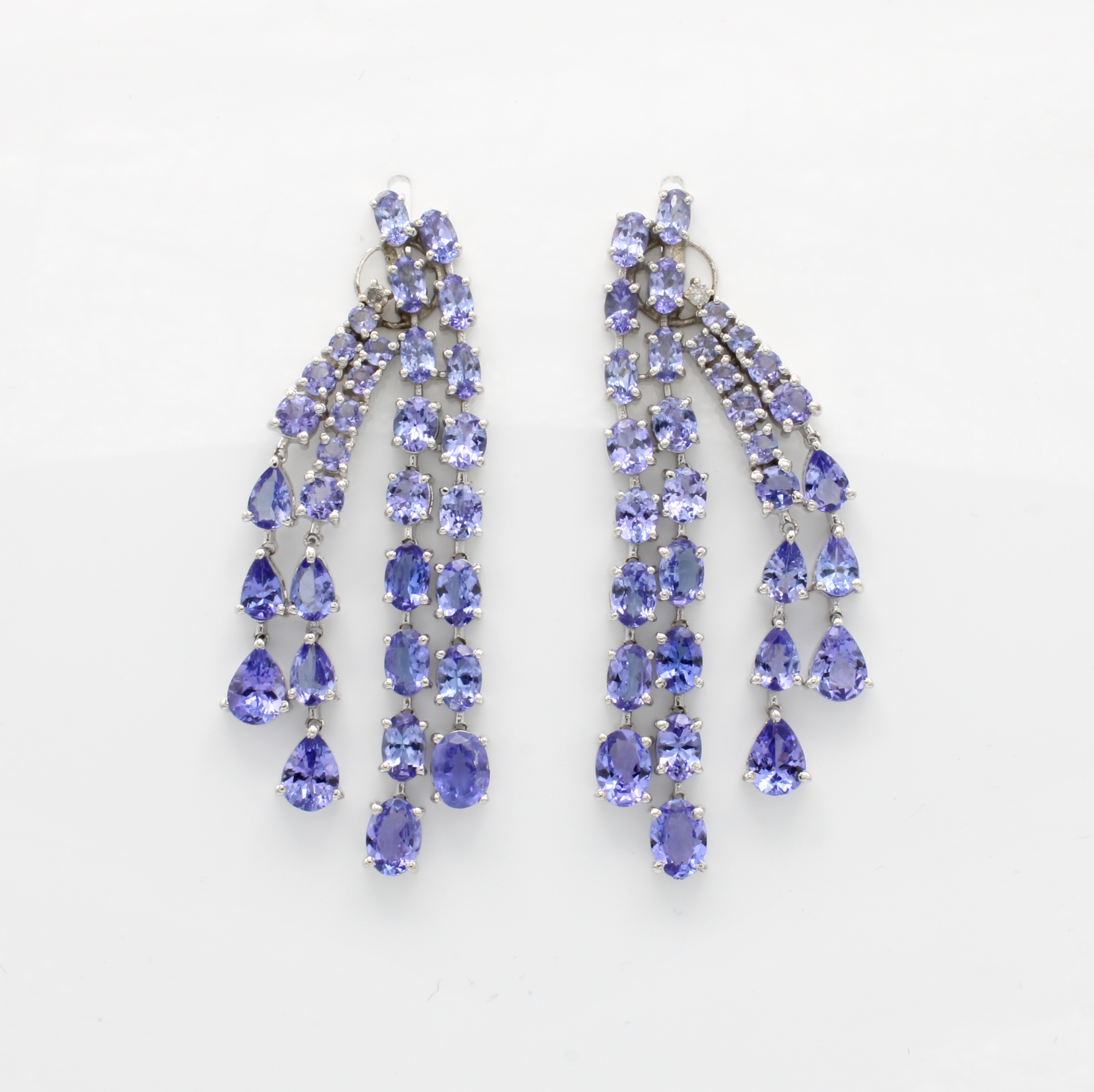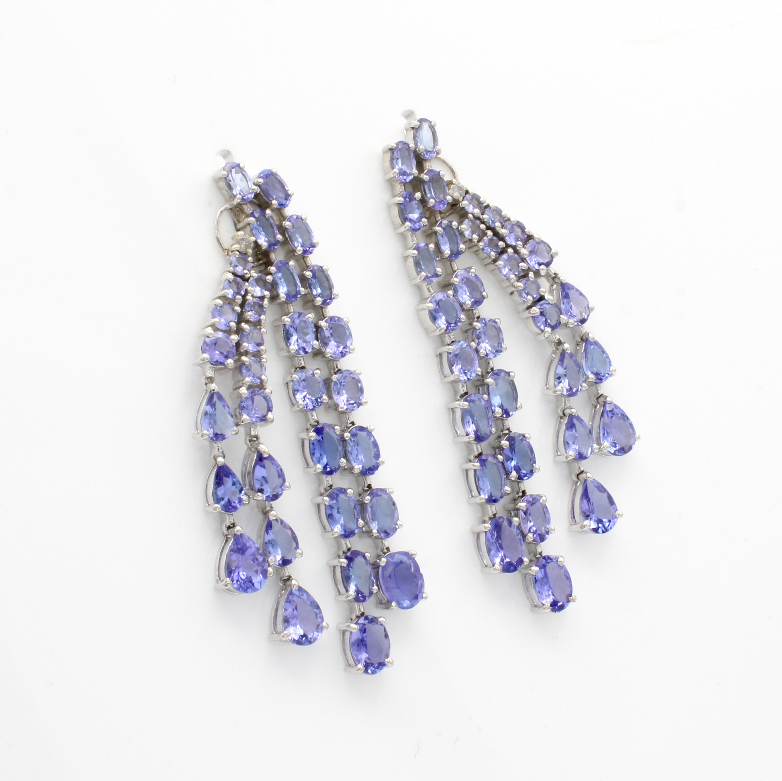Paar Ohrstecker mit Tansaniten und Diamanten, 925er Silber, z.T. bewegl. Abhängungen, Tansanite in versch. Schliffartenzus. ca. 19.70 ct, Diam. zus. ca. 0.12 ct Weiß-get./p Schätzpreis: 5400, - EUR