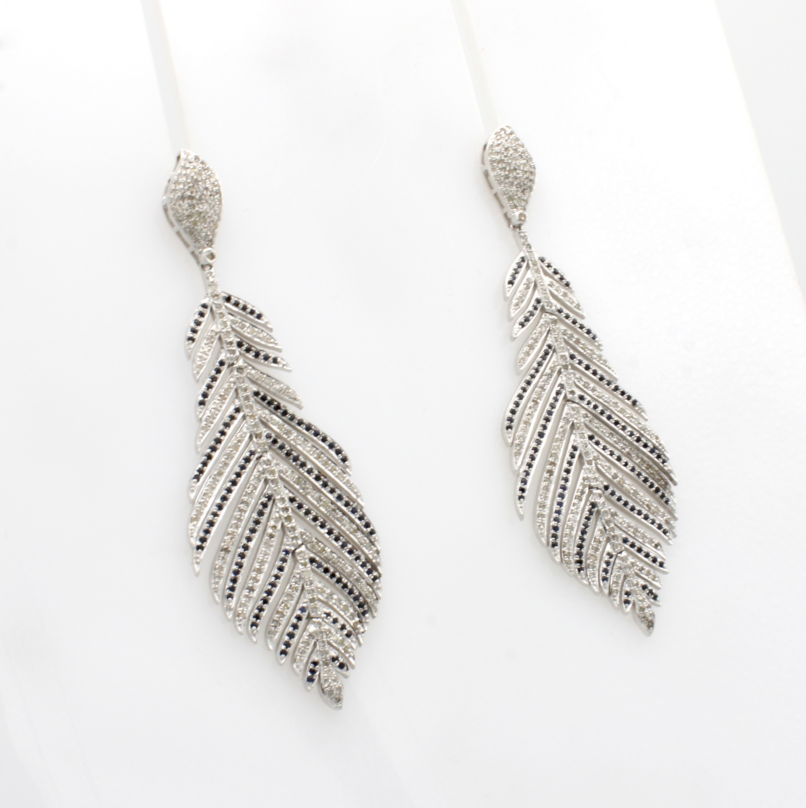 Paar Ohrstecker "Federn" mit Saphiren und Diamanten, 925er Silber, z.T. bewegl., fac. Saphire zus. ca. 3 ct, Diam. zus. ca. 3.40 ct Weiß-get./p Schätzpreis: 4500, - EUR