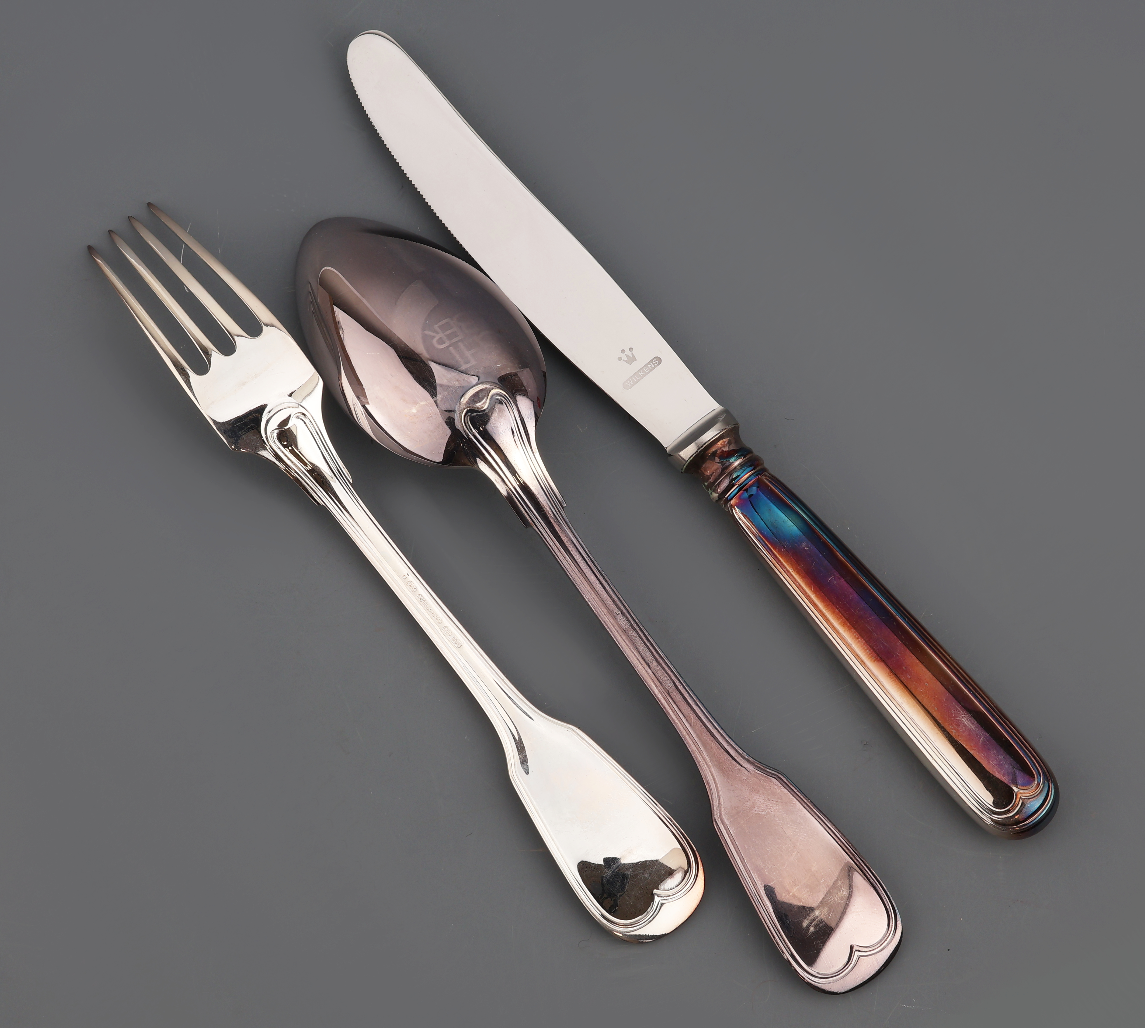 Umfangreiches Besteck für 12 Personen, 800er Silber, Wilkens Bremen, Modell Augsburger