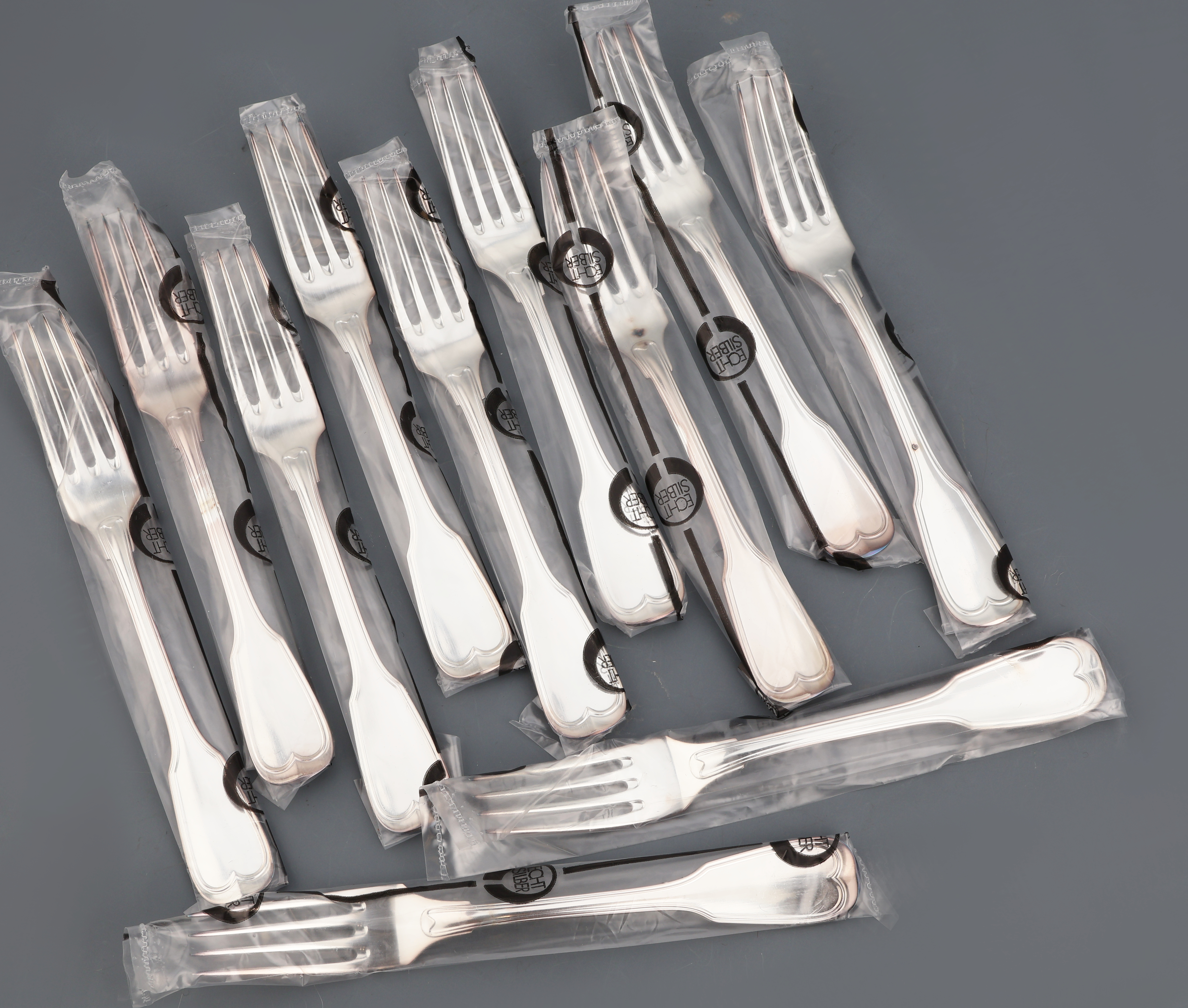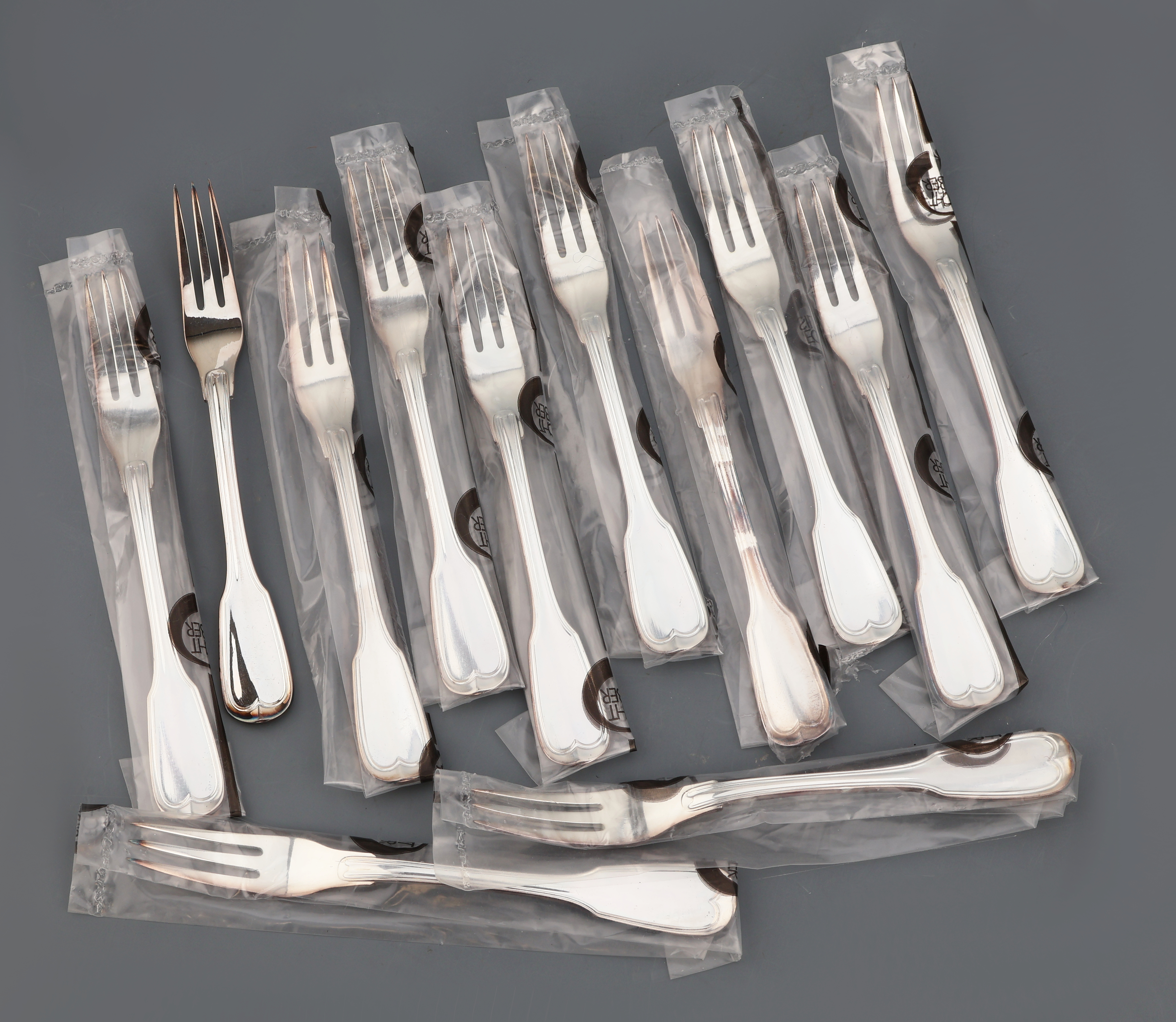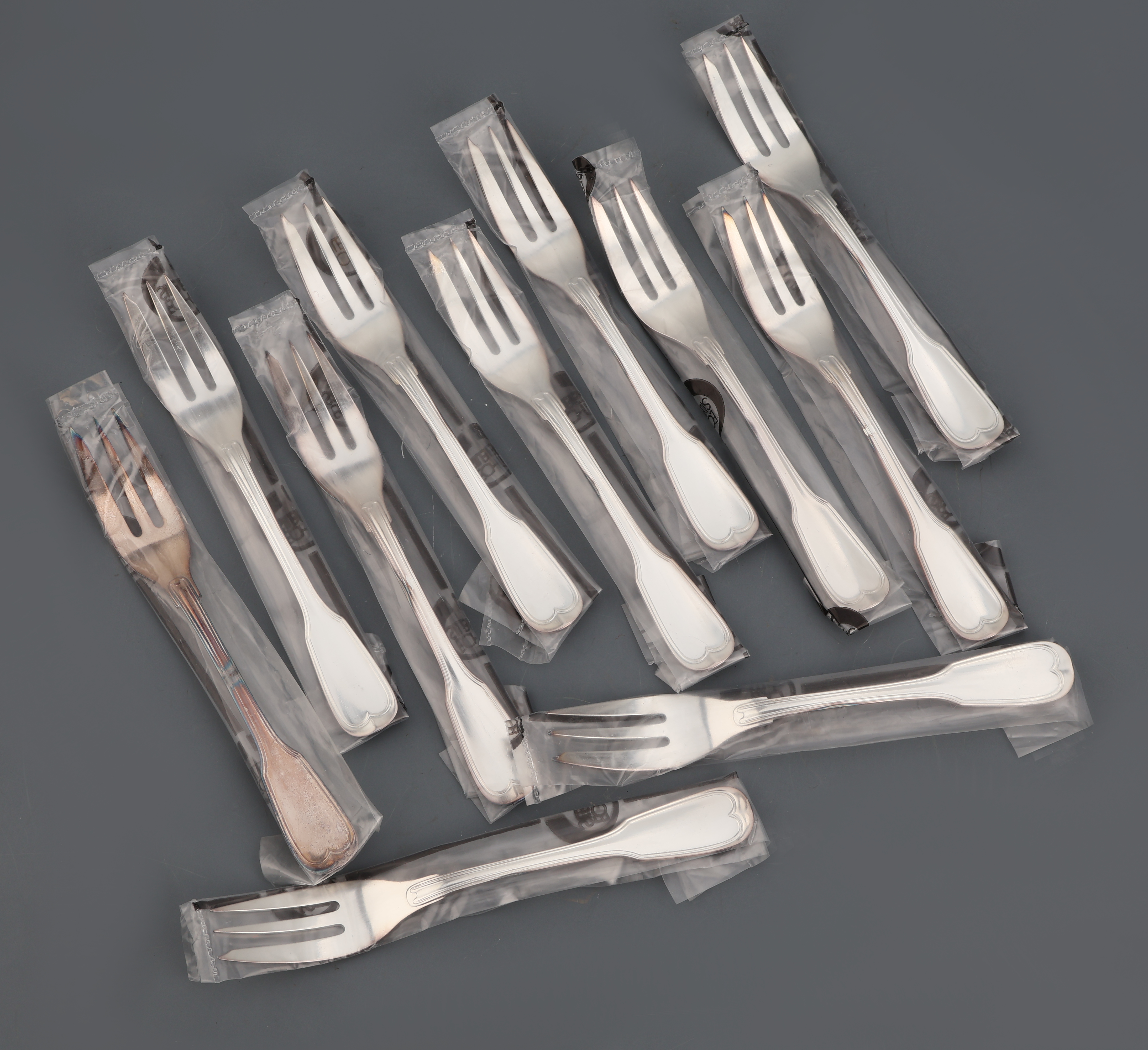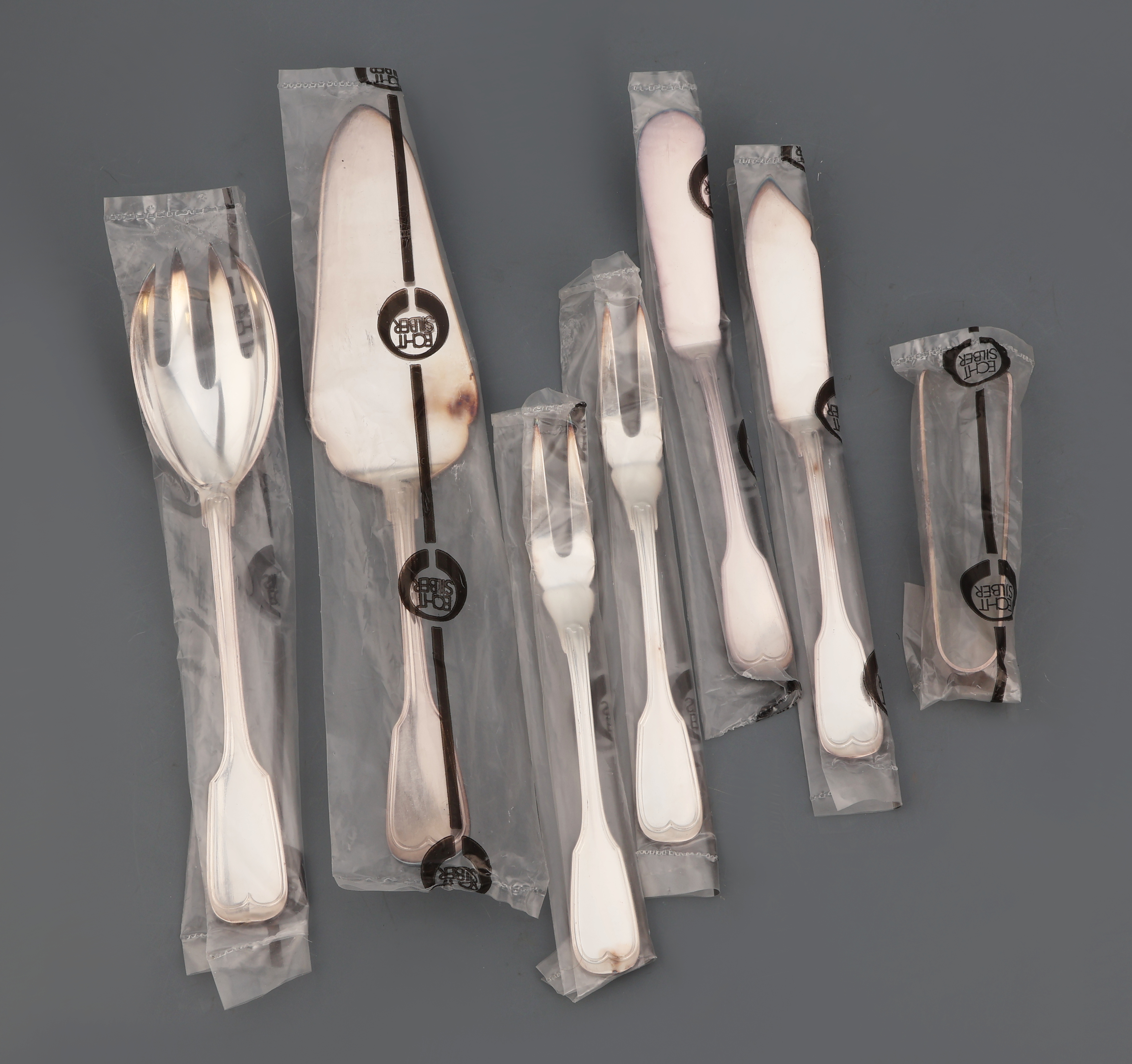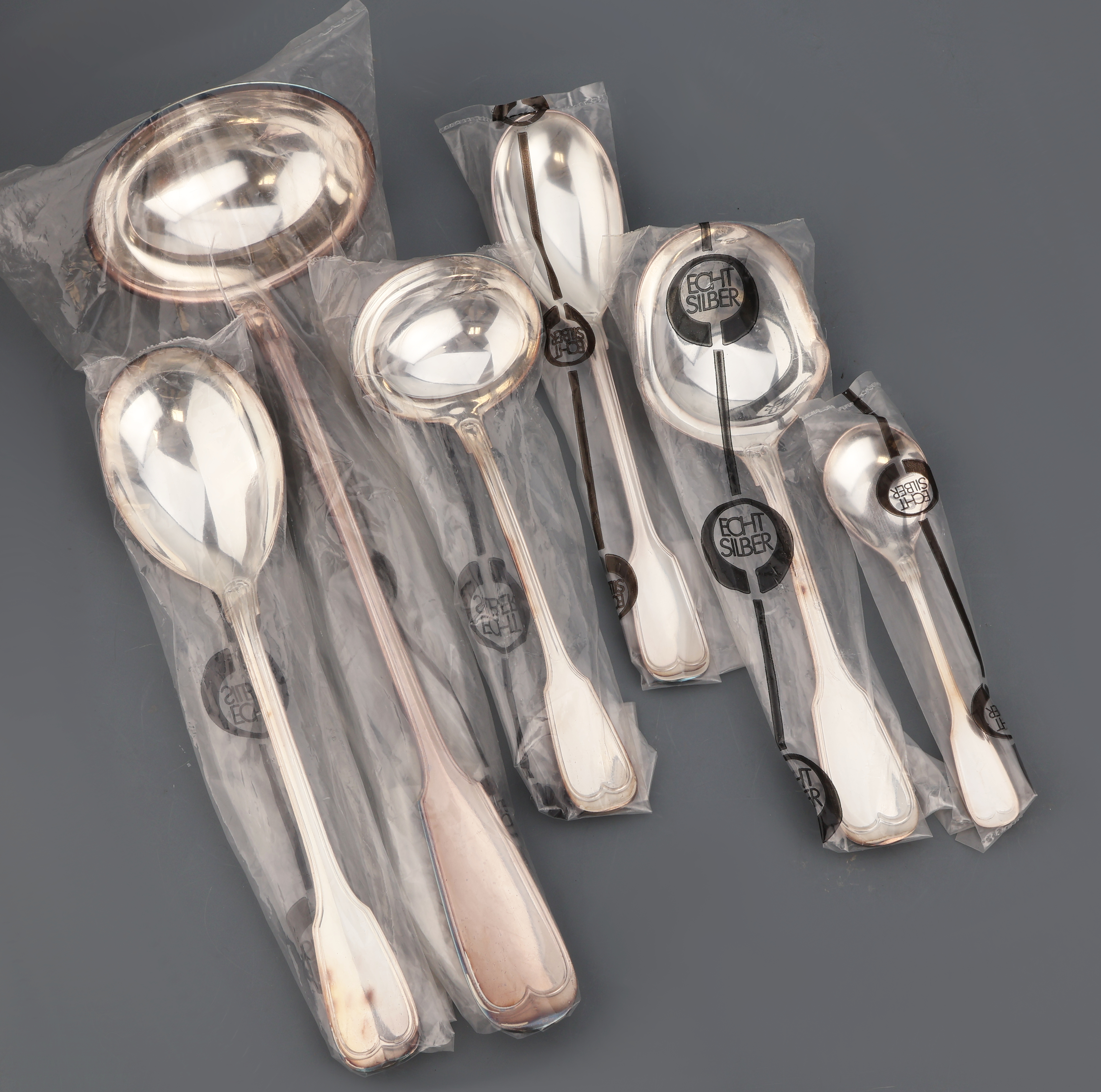 stücksgabeln, 12 Kaffeelöffel, 12 Kuchen- gabeln, Butter- und Käsemesser, 2 Wurstgabeln,2-teil.