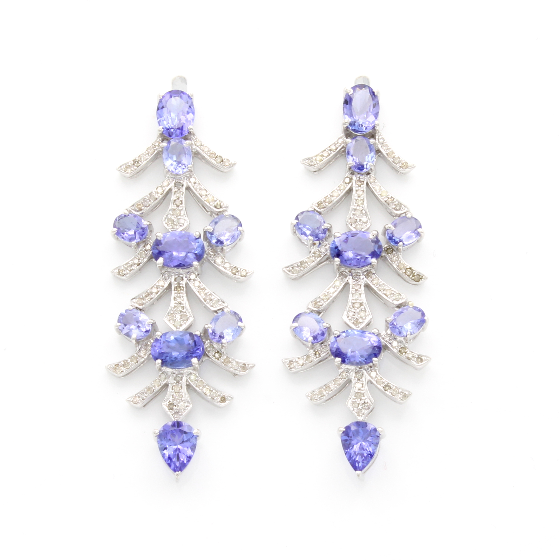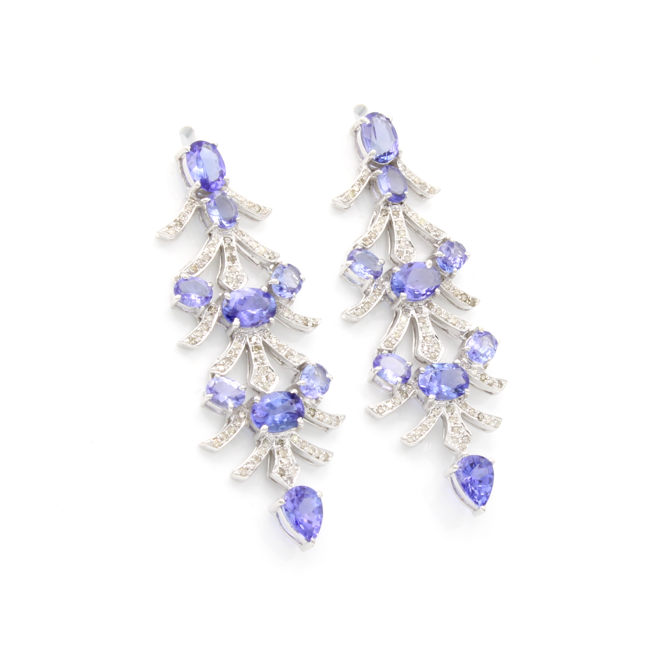 Paar Ohrstecker mit Tansaniten und Diamanten, 925er Silber, gefächerter Aufbau, ovale u. tropfenförm. Tansanite zus. ca. 8.60 ct, Diam.zus. ca. 2.10 ct Weiß-get./p Schätzpreis: 4200, - EUR