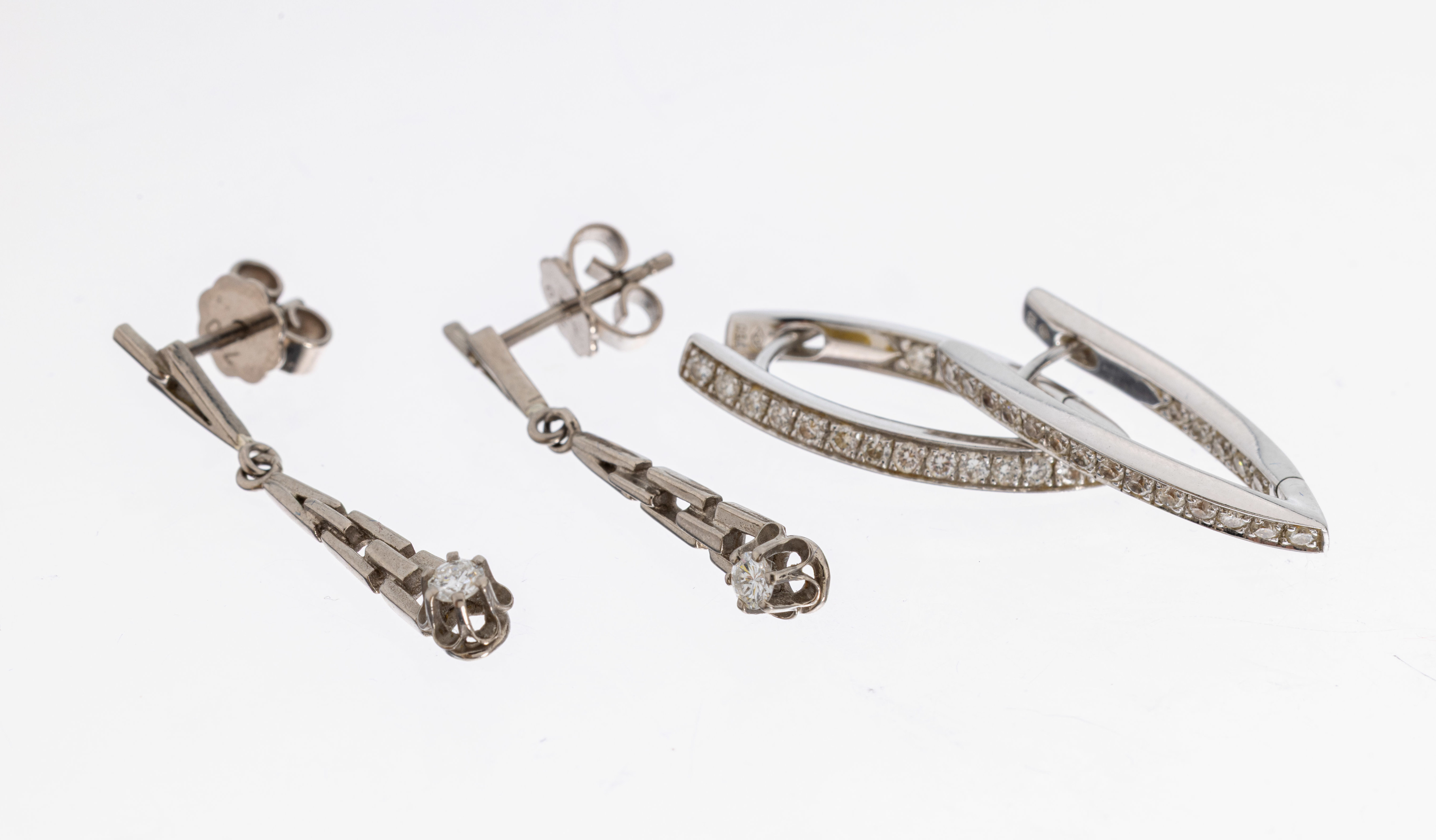 Brillanten zus. ca. 0.38 ct Weiß/si, 1x Paar Ohrgehänge mit 2 Brillanten zus. ca.