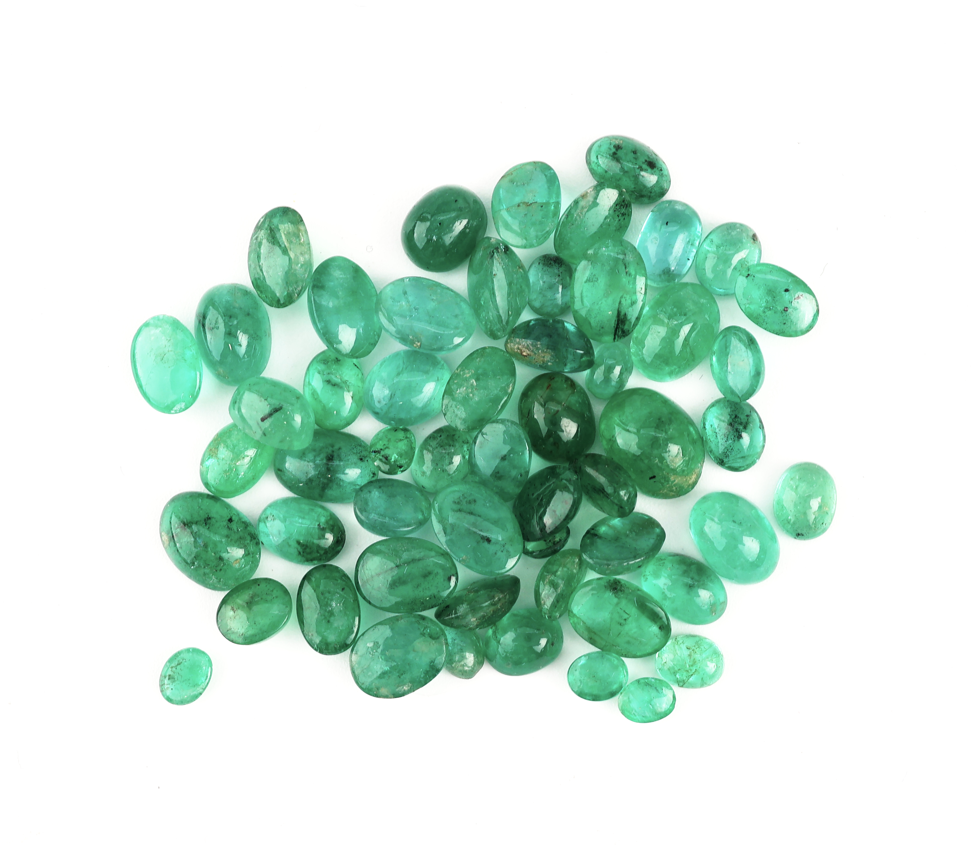 Lot lose Smaragde, zus. ca. 30.15 ct, Cabochons in versch. Größen, Formen und Farbnuancen,