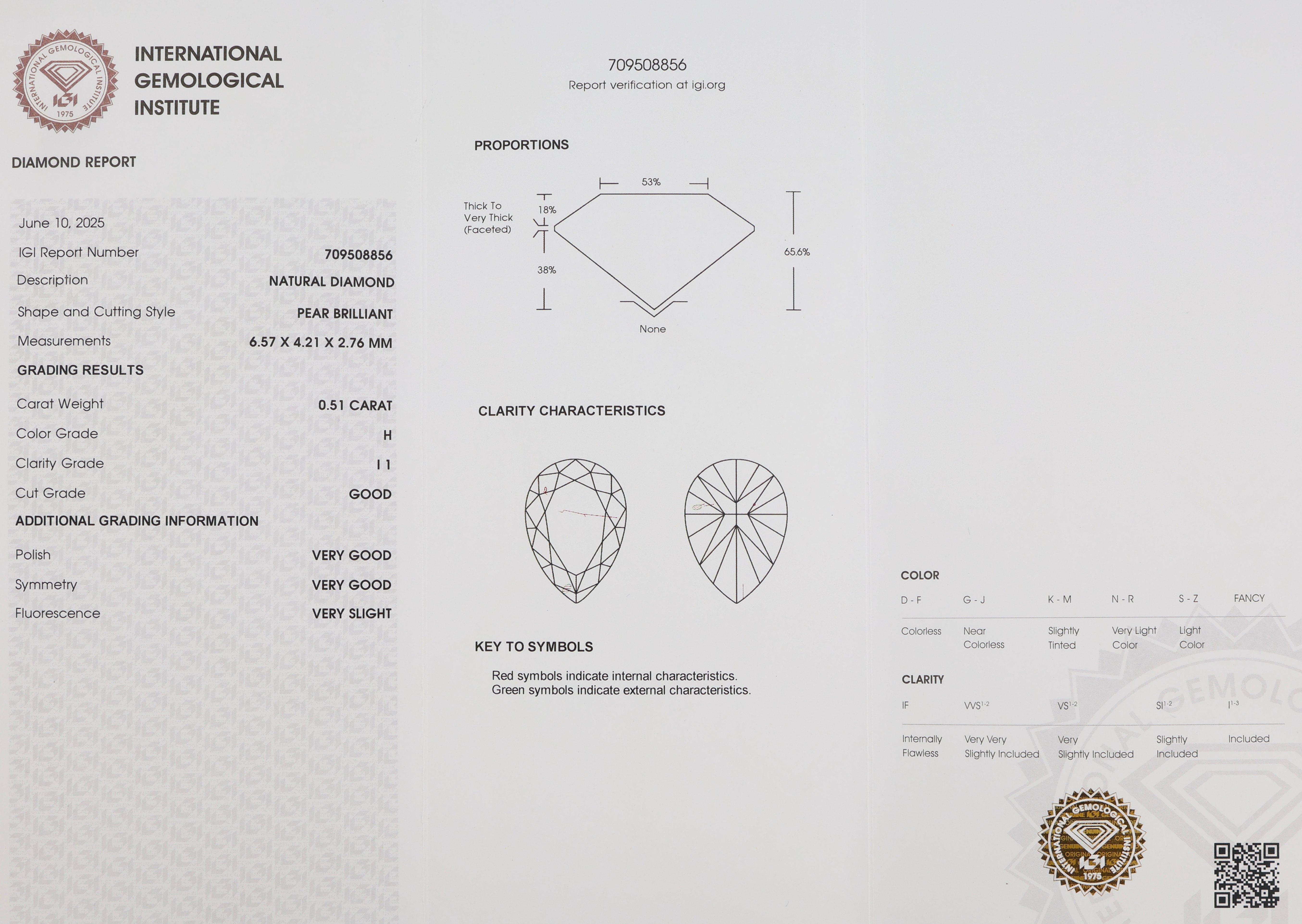 Loser Diamant, facett. Tropfen, 0.51 ct Weiß(H)/p1, eingeschweißt, IGI-Expertise
