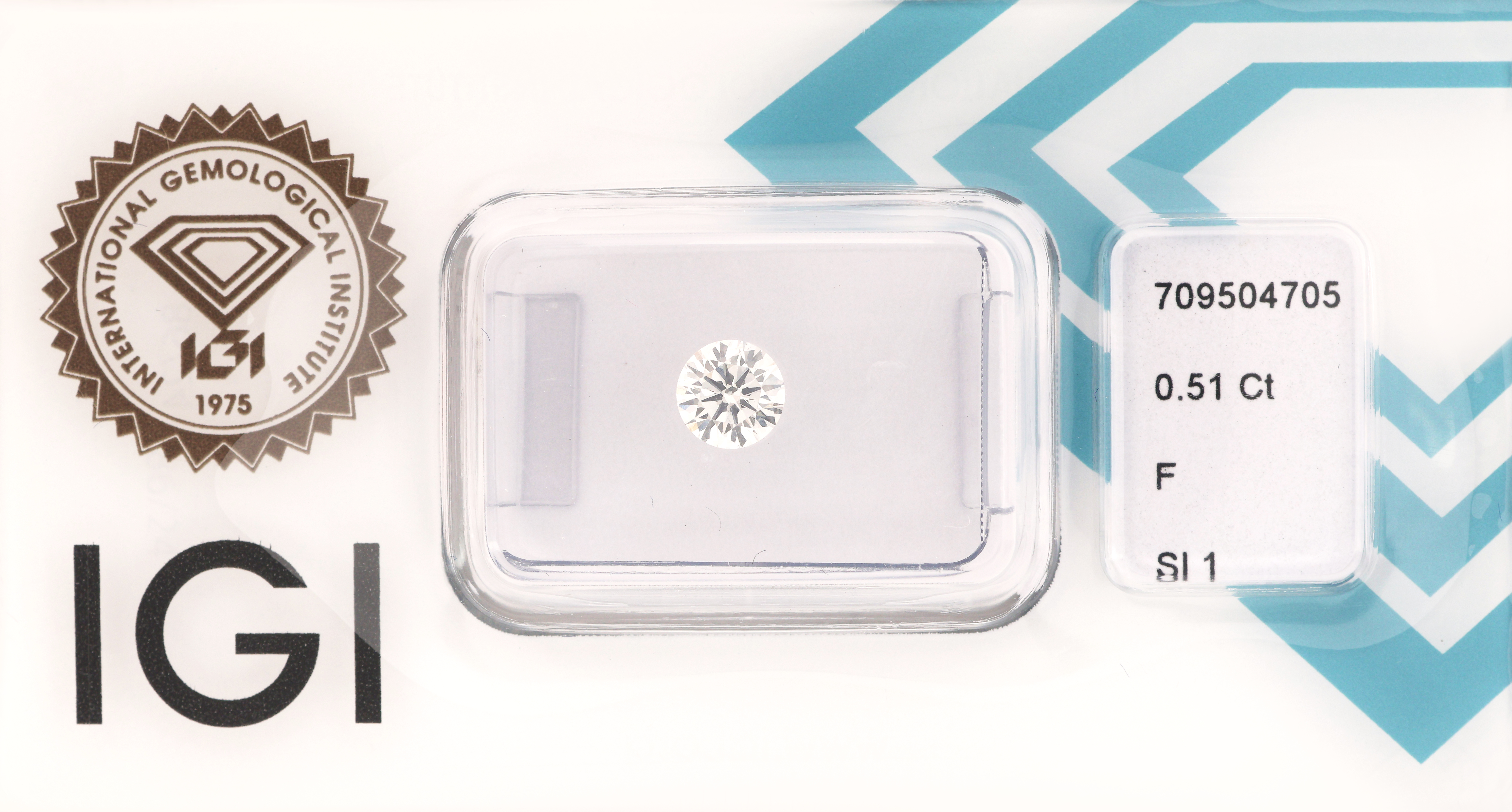Loser Brillant, 0.51 ct feines Weiß+(F)/si1, eingeschweißt, IGI-Expertise Schätzpreis: