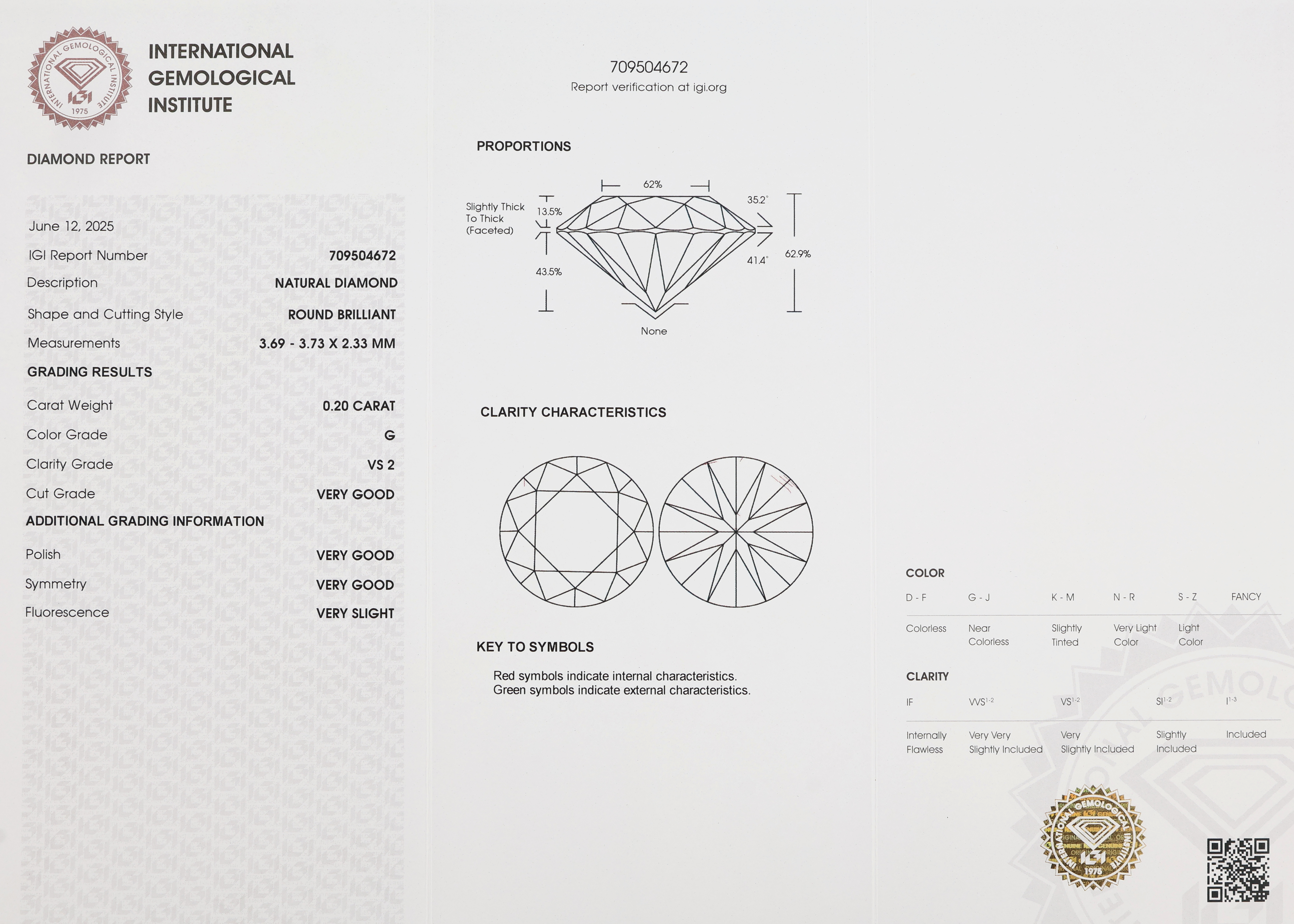 Loser Brillant, 0.20 ct feines Weiß(G)/vs2, eingeschweißt, IGI-Expertise Schätzpreis: