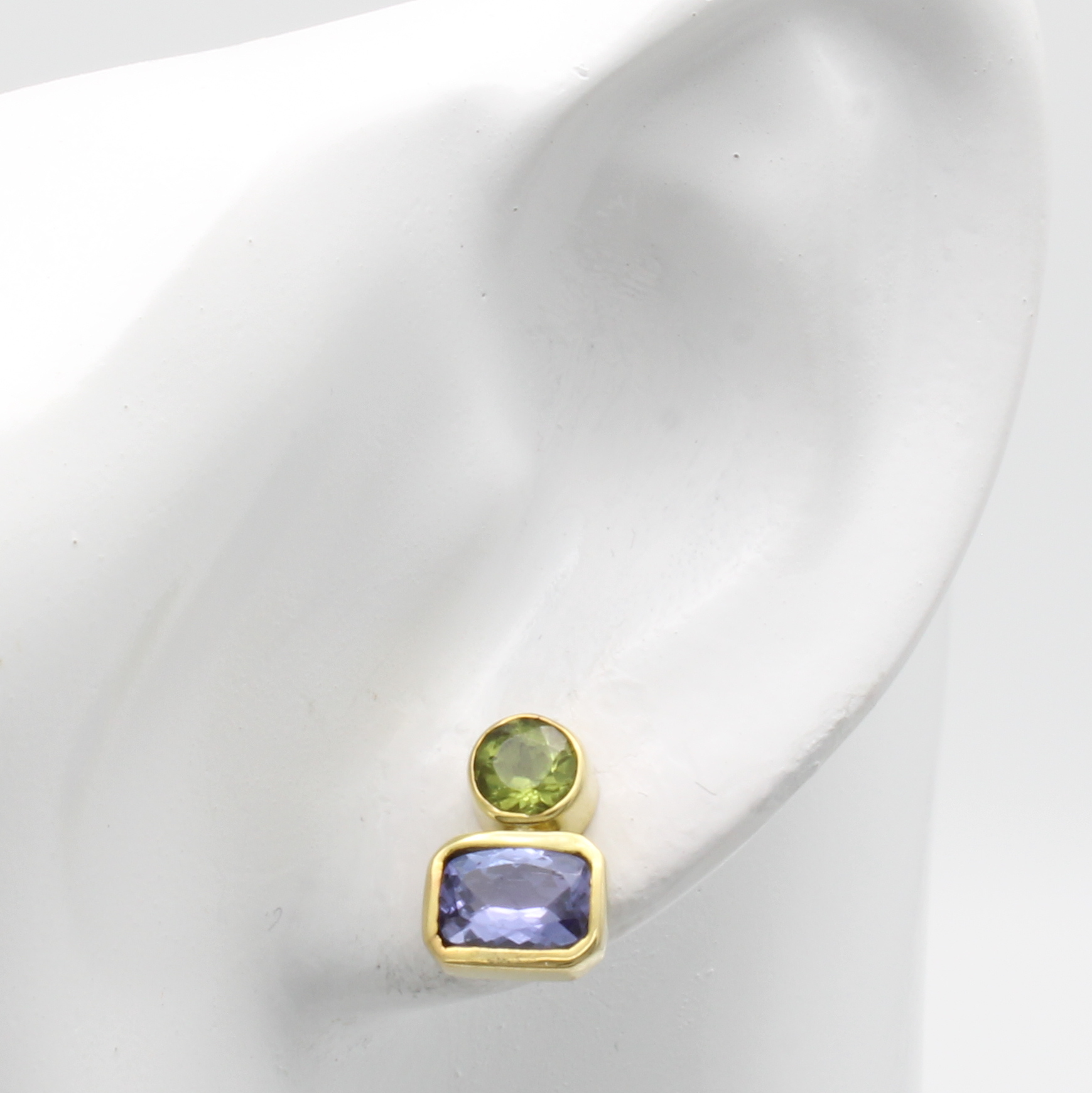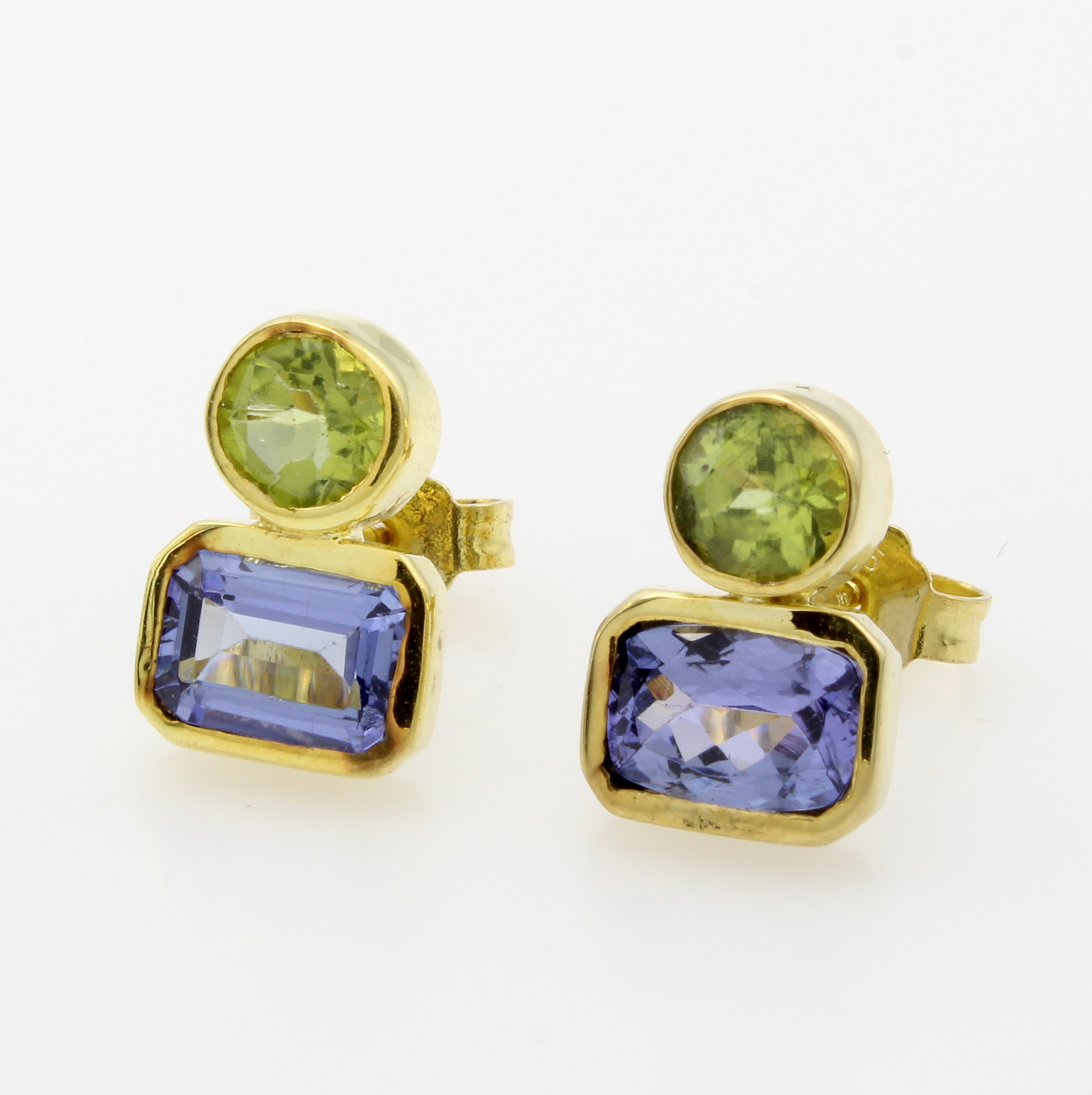 Paar Ohrstecker mit Farbsteinen, GG 585/000, 2 Tansanite zus. ca. 1.75 ct, 2 Peridots zus. ca. 0.94 ct Schätzpreis: 1750, - EUR