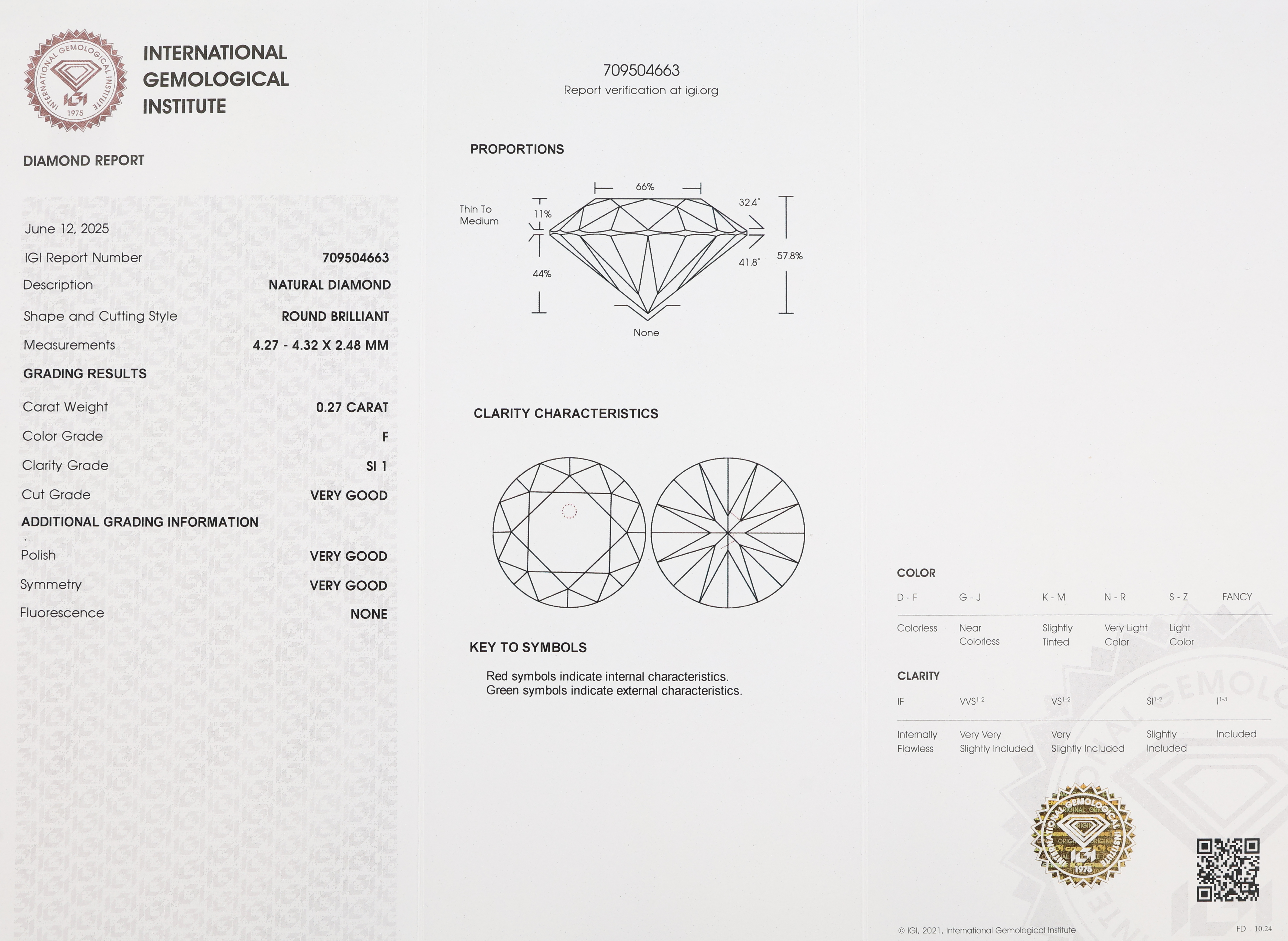 Loser Brillant, 0.27 ct feines Weiß+(F)/si1, eingeschweißt, IGI-Expertise Schätzpreis: