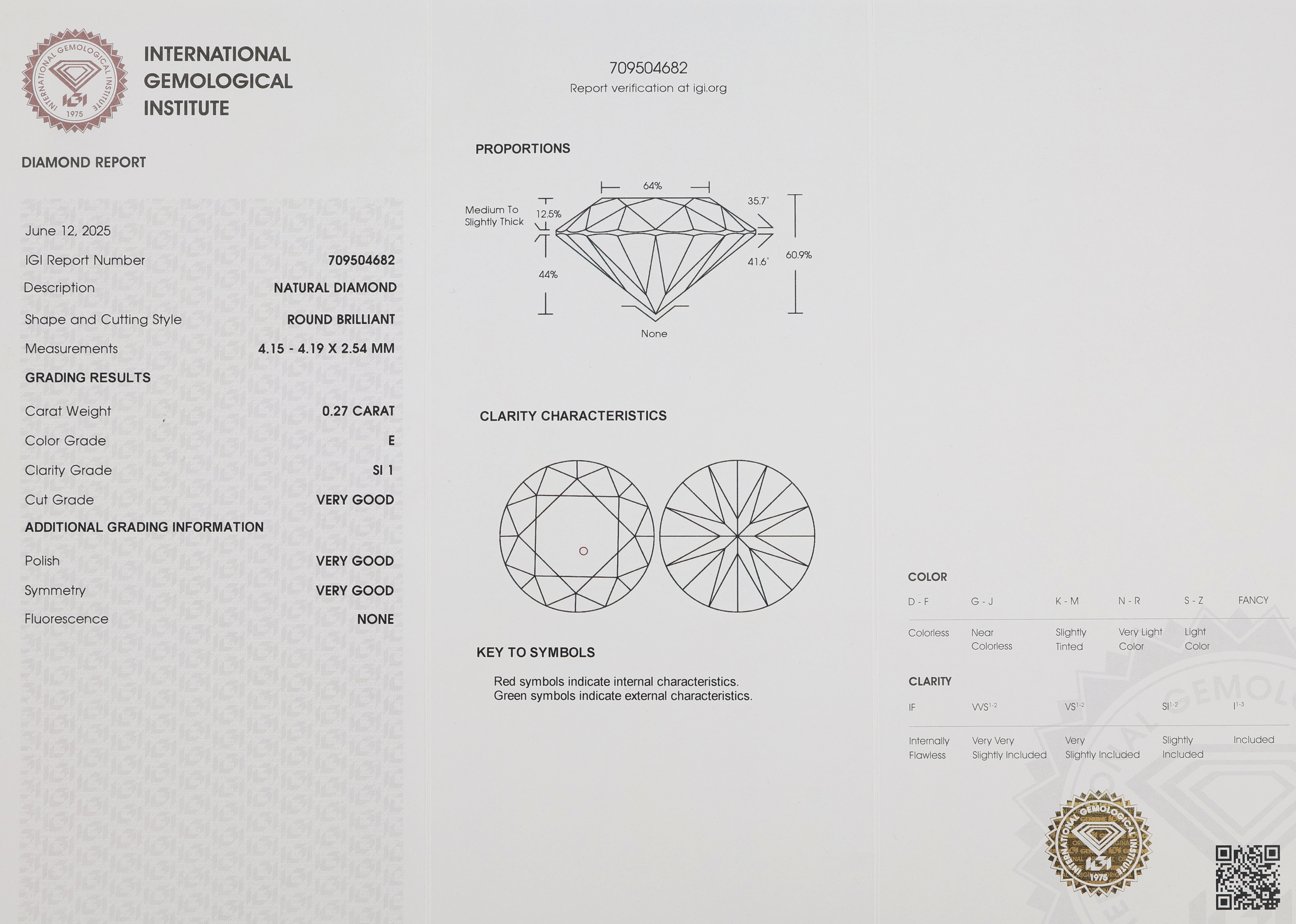 Loser Brillant, 0.27 ct hochfeines Weiß(E)/si1, eingeschweißt, IGI-Expertise Schätzpreis: