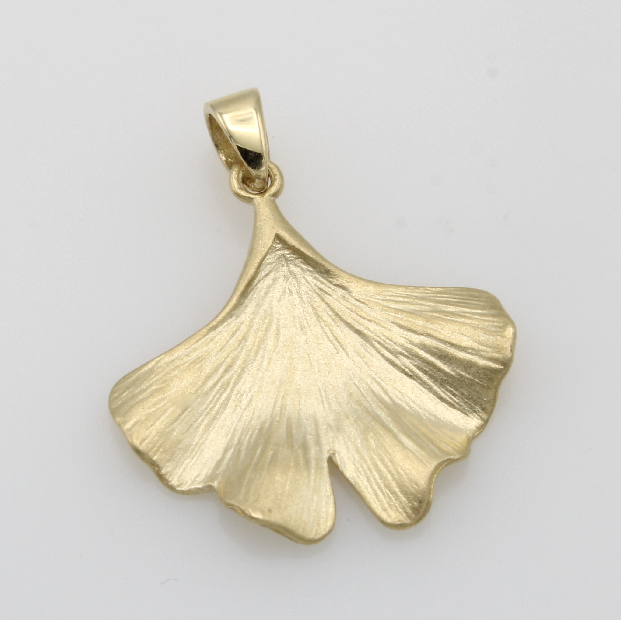 Anhänger "Ginkgoblatt", GG 585/000, Vorderseite mattiert