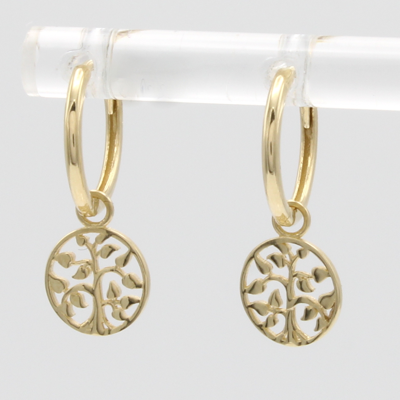 Paar Klappcreolen mit Einhängern, GG 585/000, Lebensbäume als Einhänger, herausnehmbar