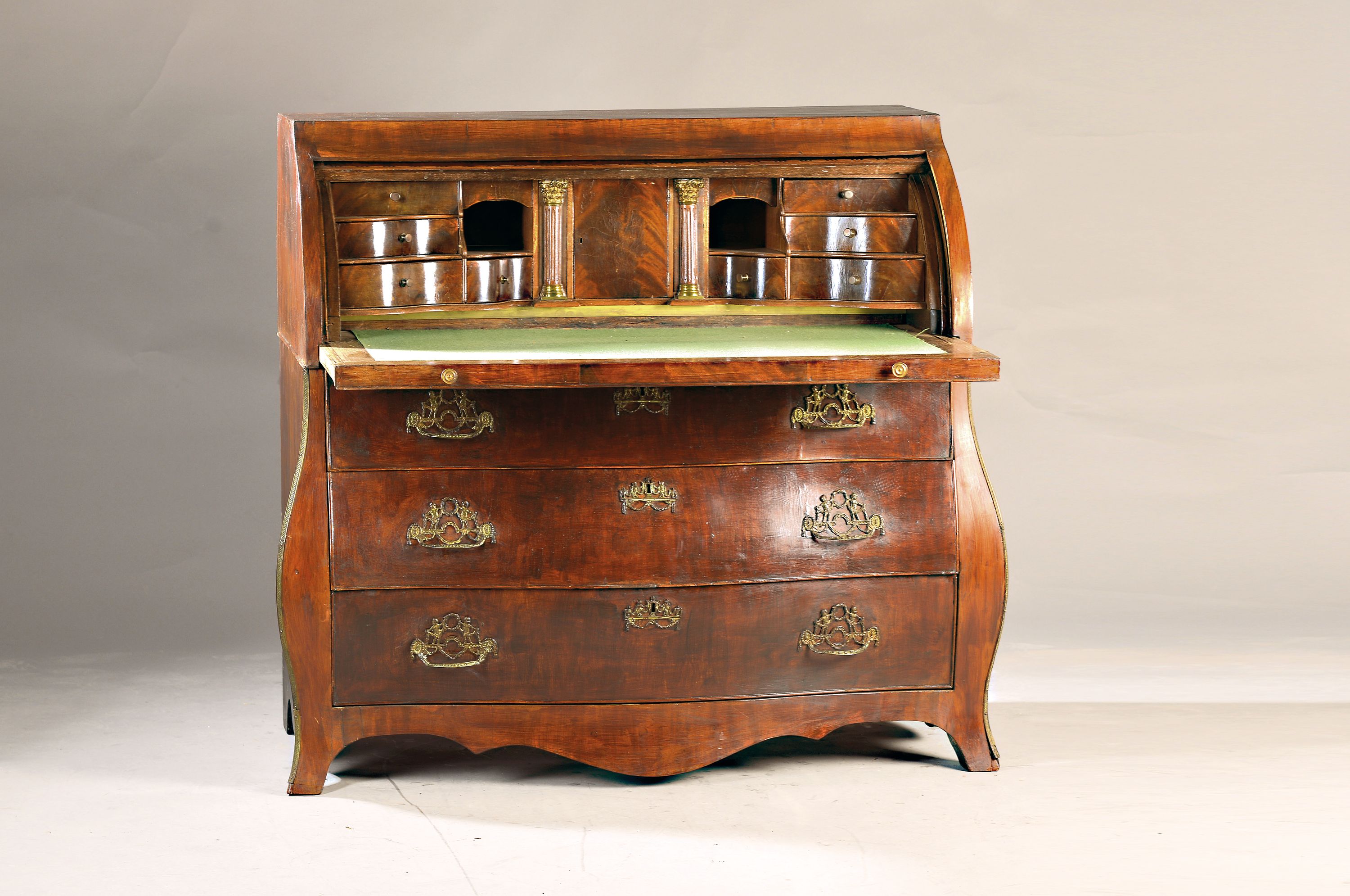 Rollsekretär/Zylinderbureau, England, um 1900, Mahagoni, 3 Schubladen, hinter Rollo