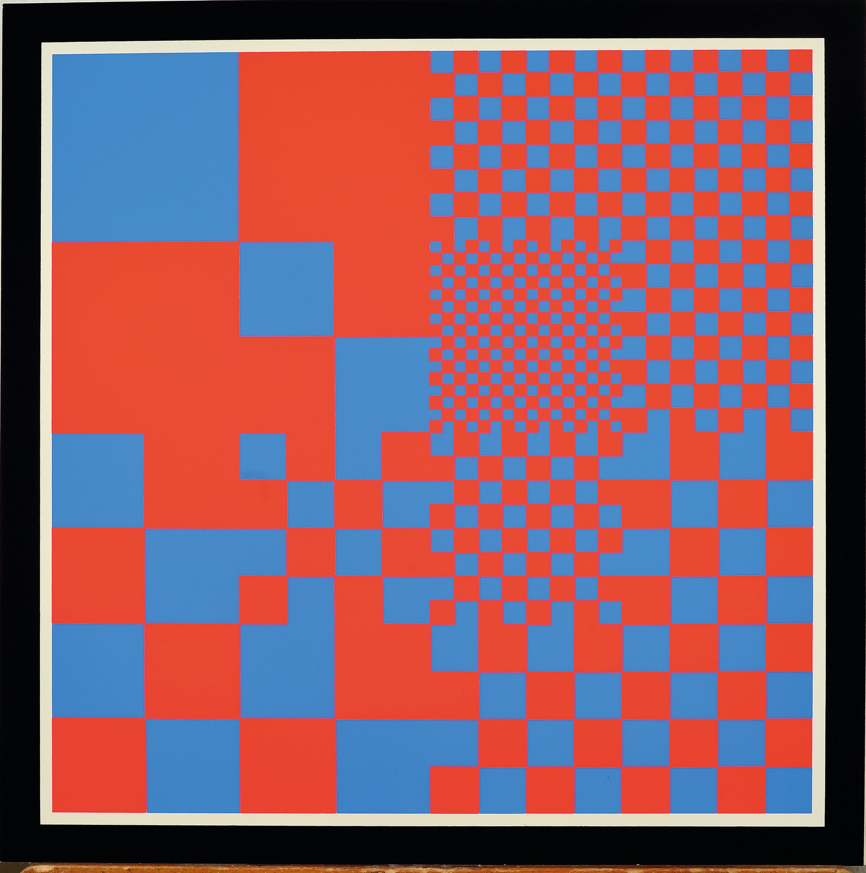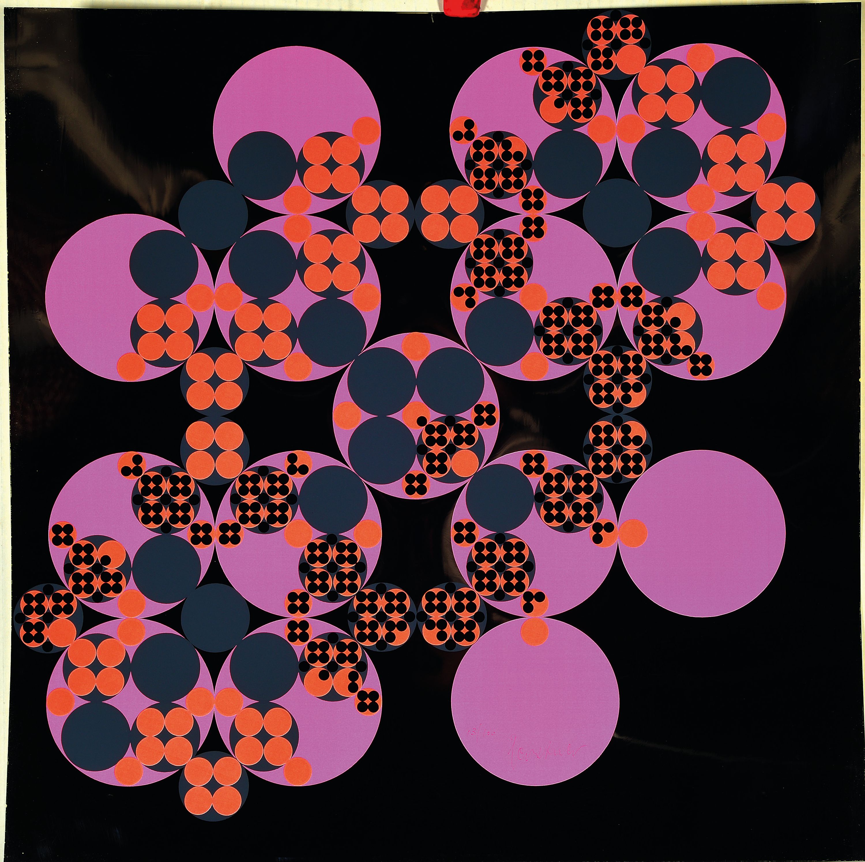 Karl Gerstner, 1930-2017 Basel, Konkrete Kunst, 2 Farbsiebdrucke, "Ausschnitt aus dem Weltall vergrößert", auf Spiegelfolie, 1972, Ed. 13/100, signiert, 50x50 cm (l. berieben); o.T., Komposition mit Tagesleuchtfarbe, 1961/1970, Ed. 90/135, verso signierter Stempel der Galerie Lüpke, Frankfurt/Main, 51x51 cm, ungerahmt