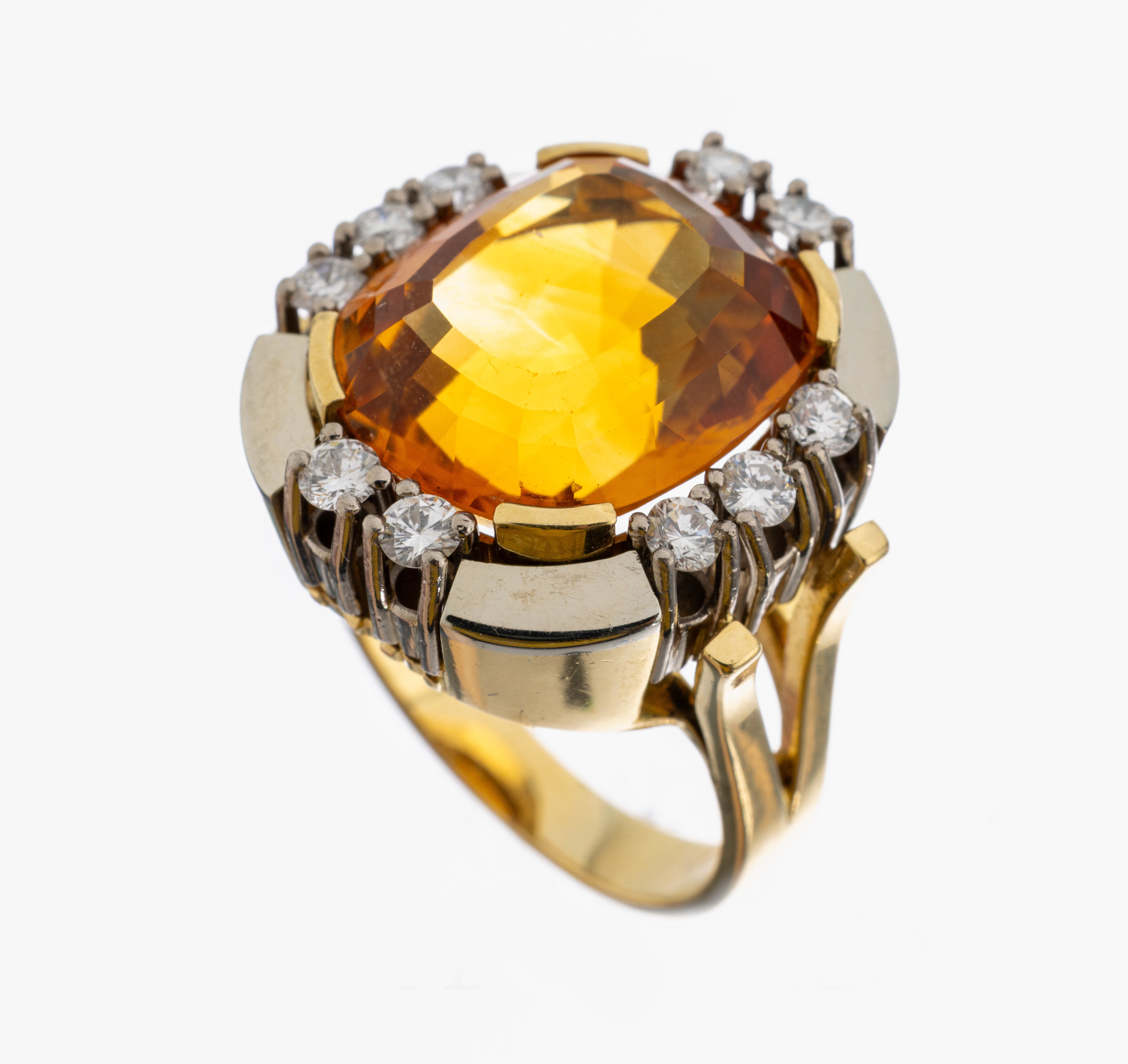 18 kt Gold Citrin-Brillant-Ring, GG/WG 750/000, qualitätvolle Verarbeitung, Citrin